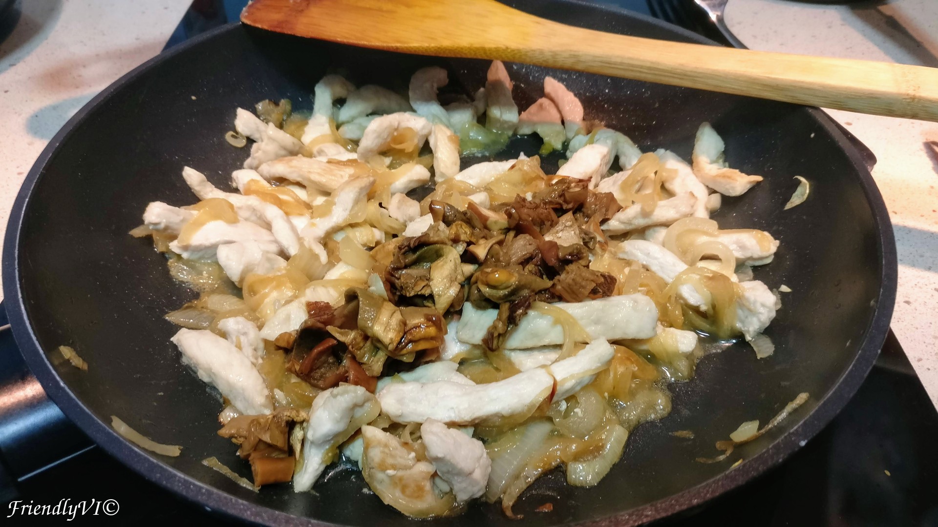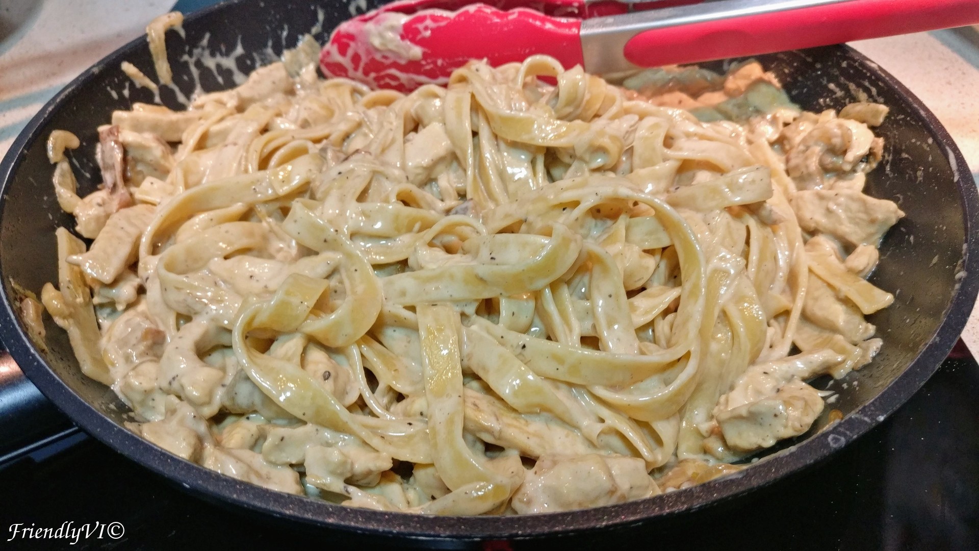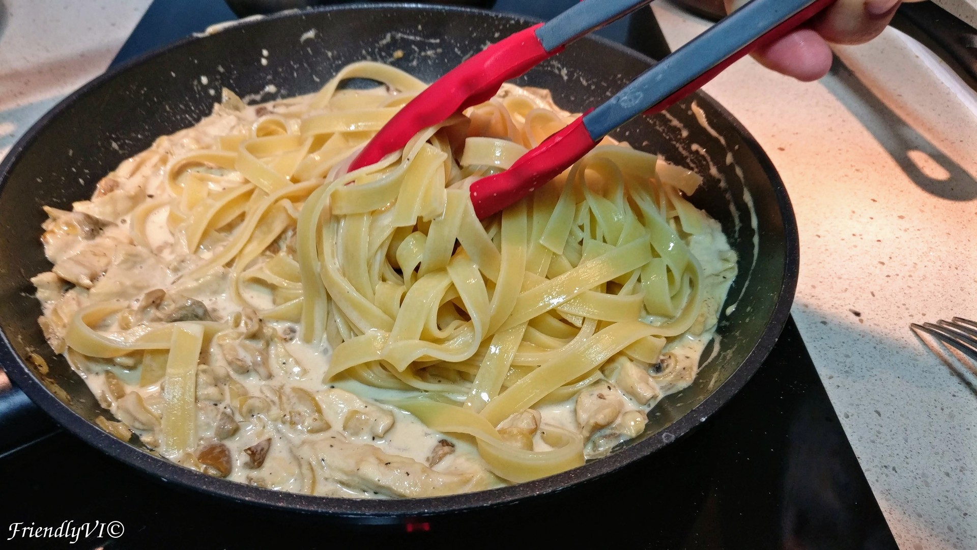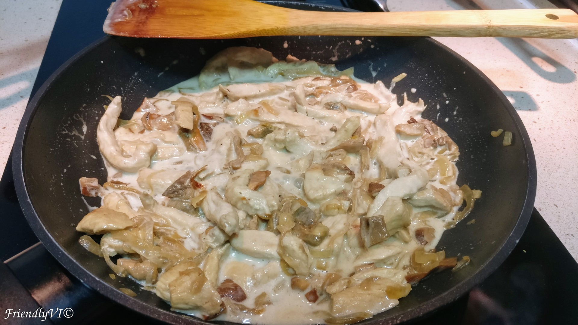 As boring as pasta with chicken and mushrooms sounds, as much it is going to rock your world! 😀