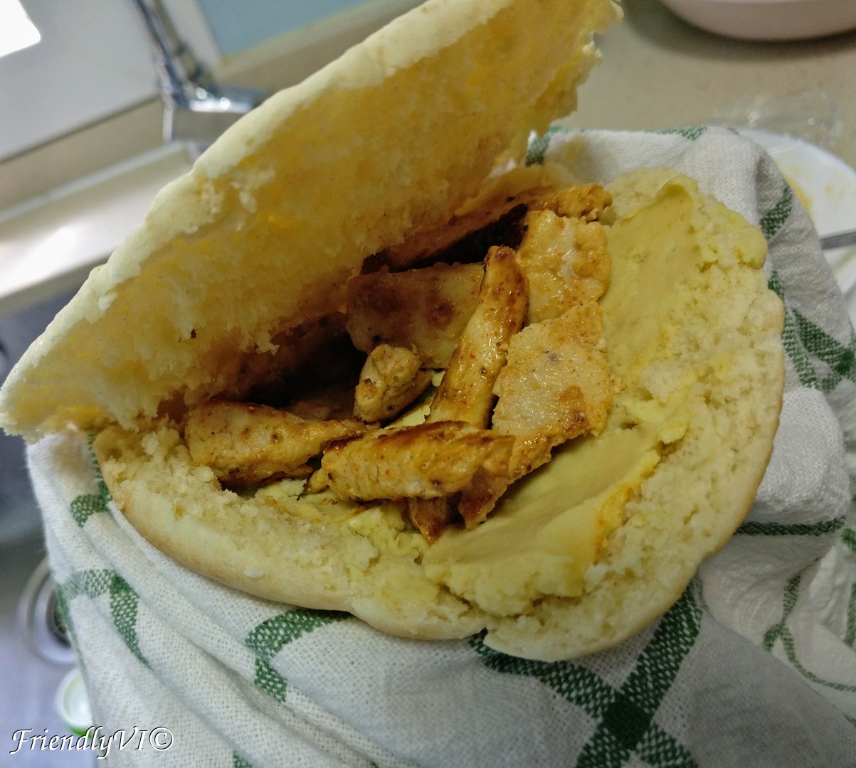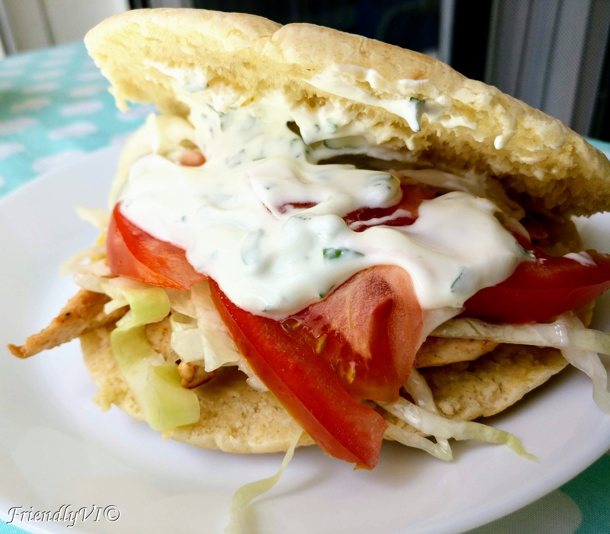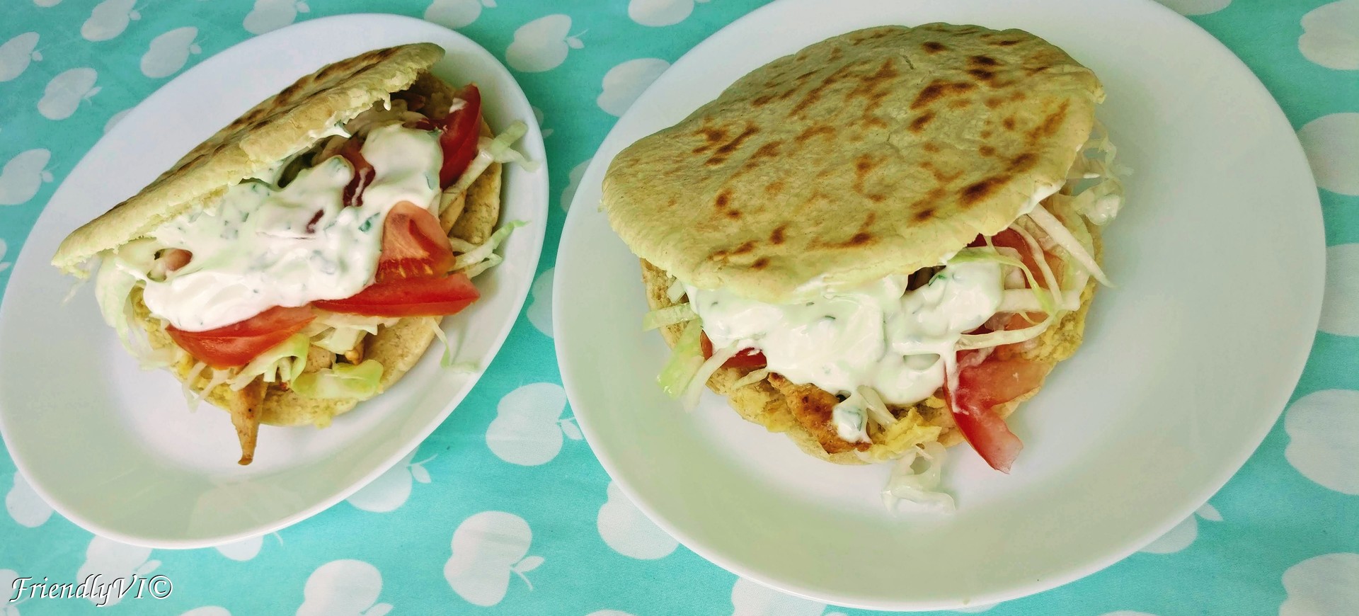 Pita with marinated chicken and mint yogurt