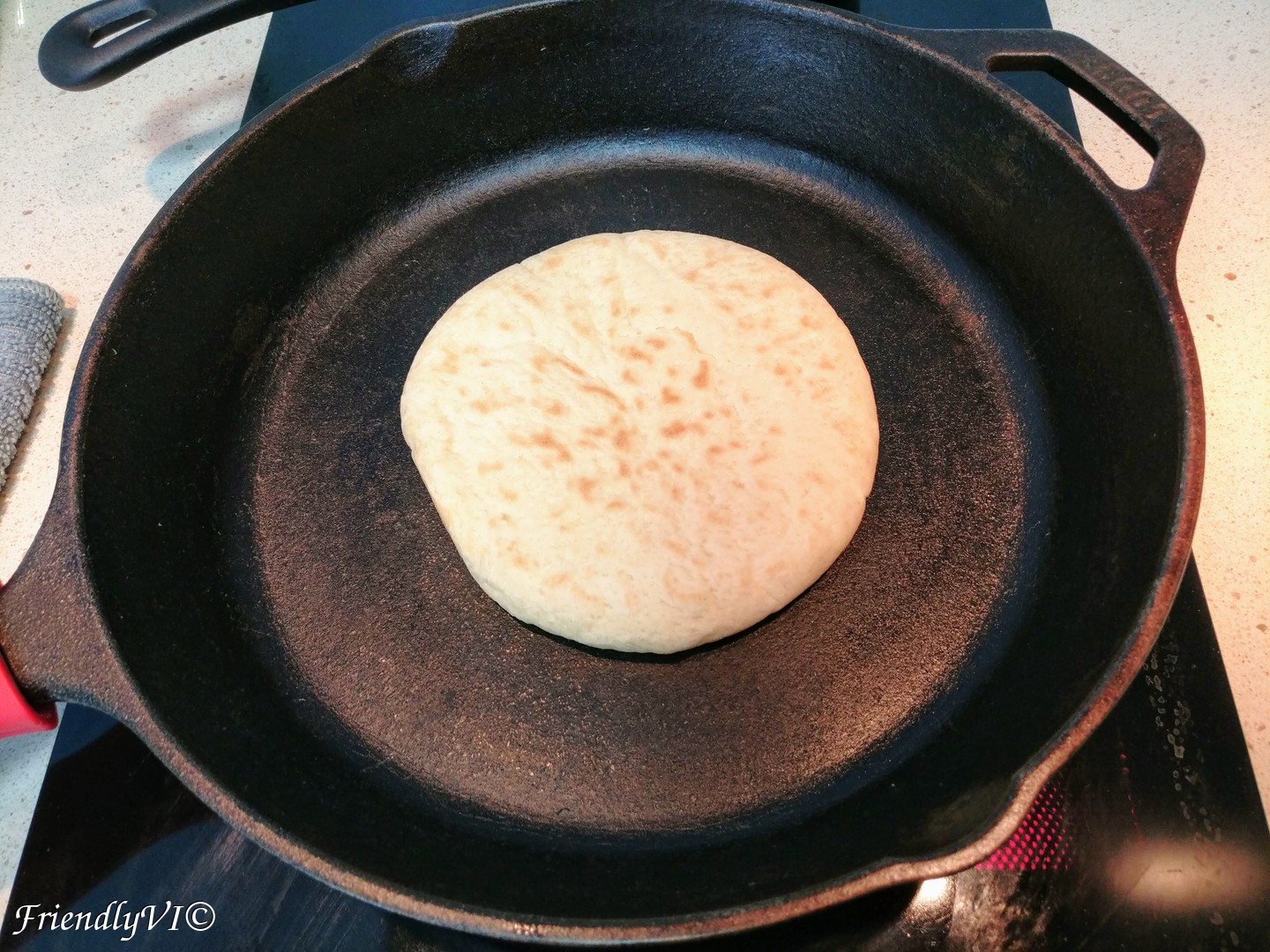 - Warm up a pita in a cast iron skillet or a toaster.