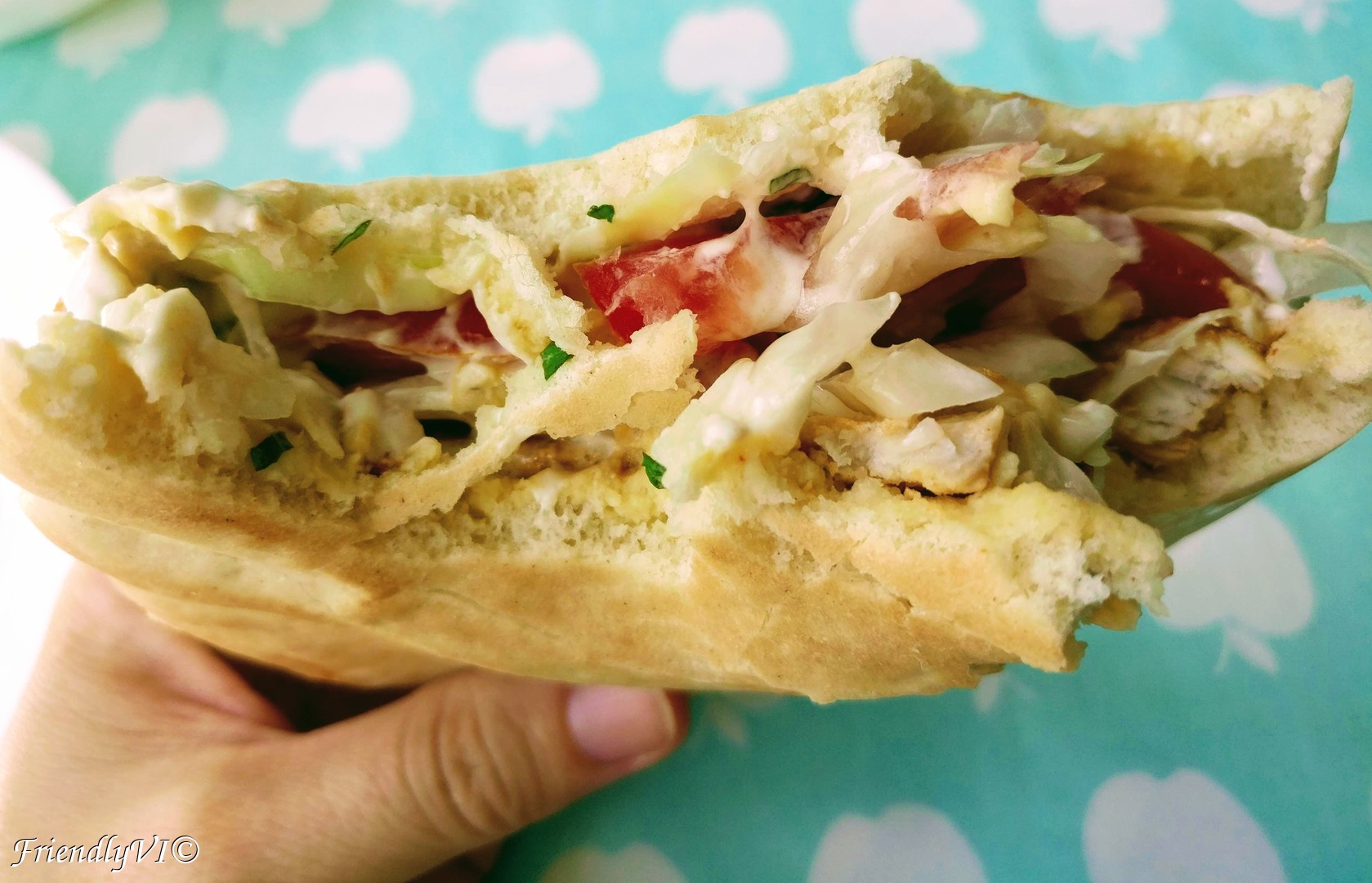 - Looks very difficult to eat at first, but the pita is quite roomy and stretchy, so you will be able to gather it and enjoy it until the very last bite. It is a very flavorful meal, with a taste of freshness due to the mint and very nice balance between the sweet and sour ingredients. We are having tomorrow a third round!