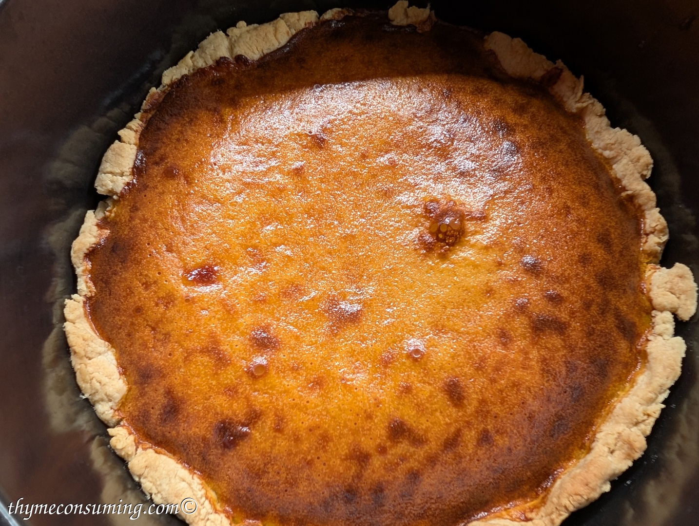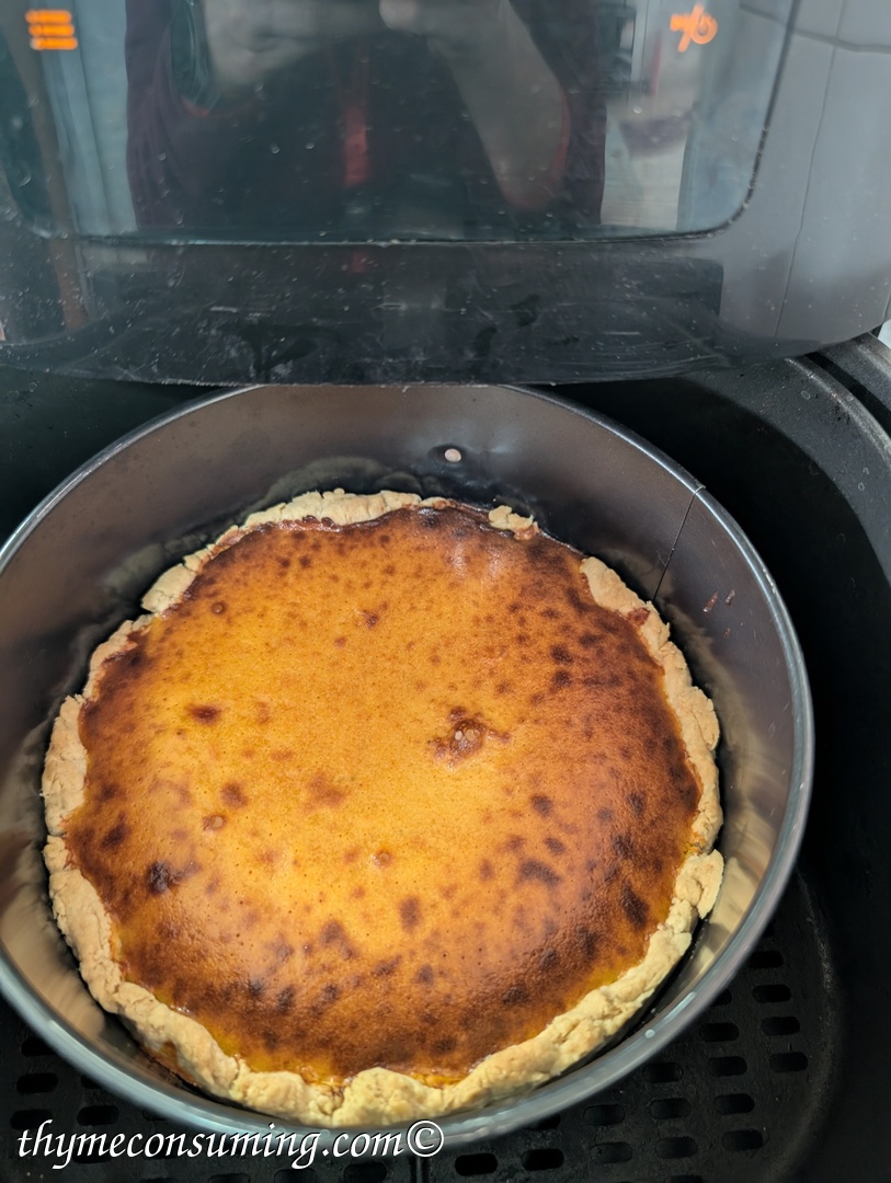 Why in the airfryer? Because it is so much faster. This is one of those recipes that if you are in the US it is very easy to make. If you are not, you need to bake and puree your pumpkin. But at least you know what you put in your pie.