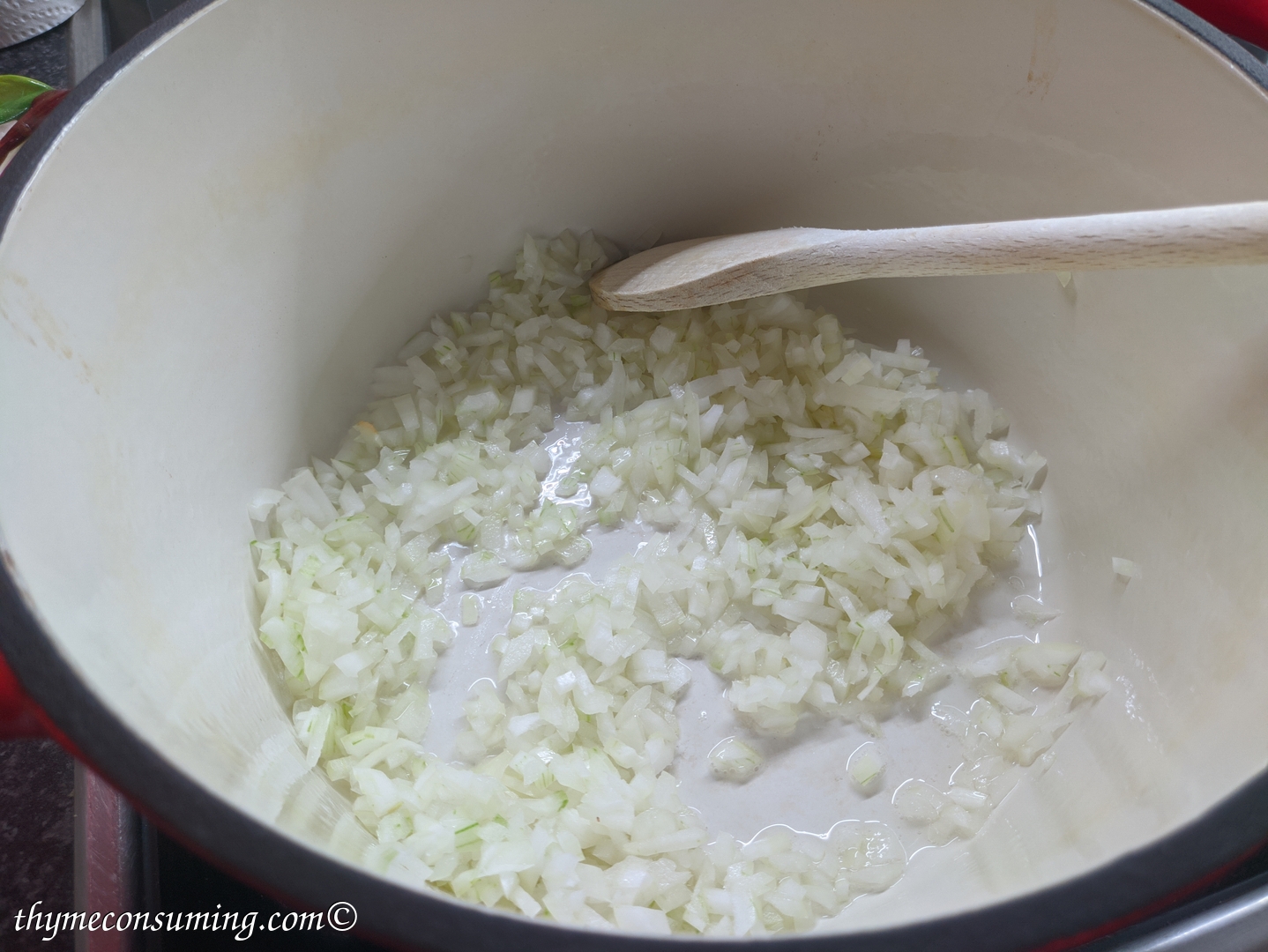 - Fry the onion in the 1 tablespoon of coconut oil until translucent.