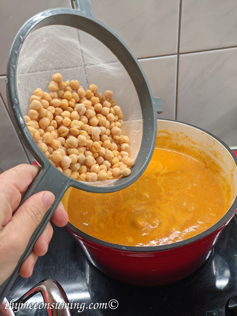 - Now you can partially blend the curry if you want it creamier and thicker, but it is optional.