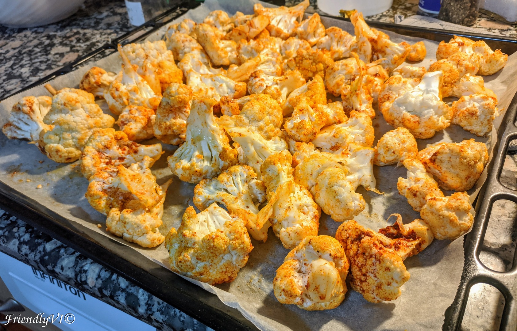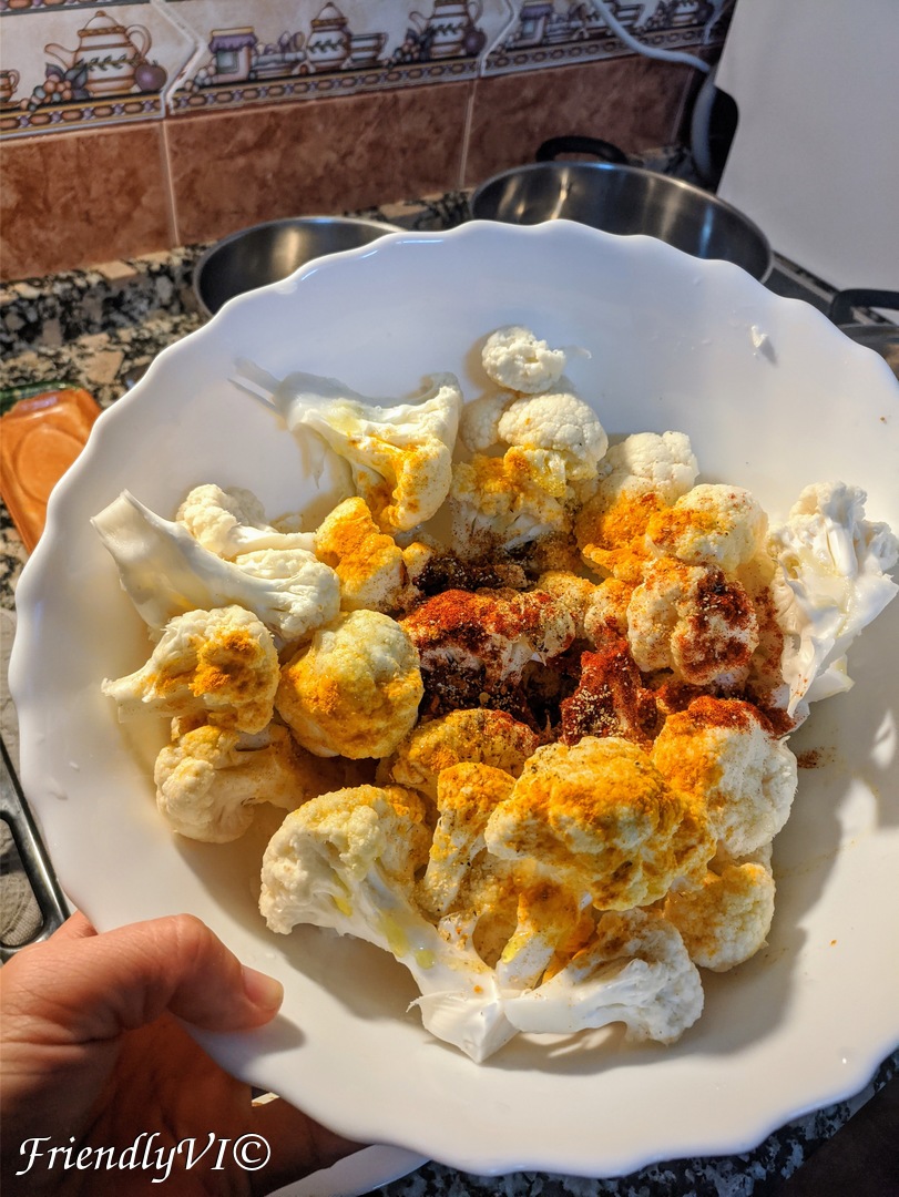 This cauliflower recipe is very easy to prepare. a bit long to bake, the the wait is well worth it. You can snack on it as is, use it as a side dish, eat it warm or cold.