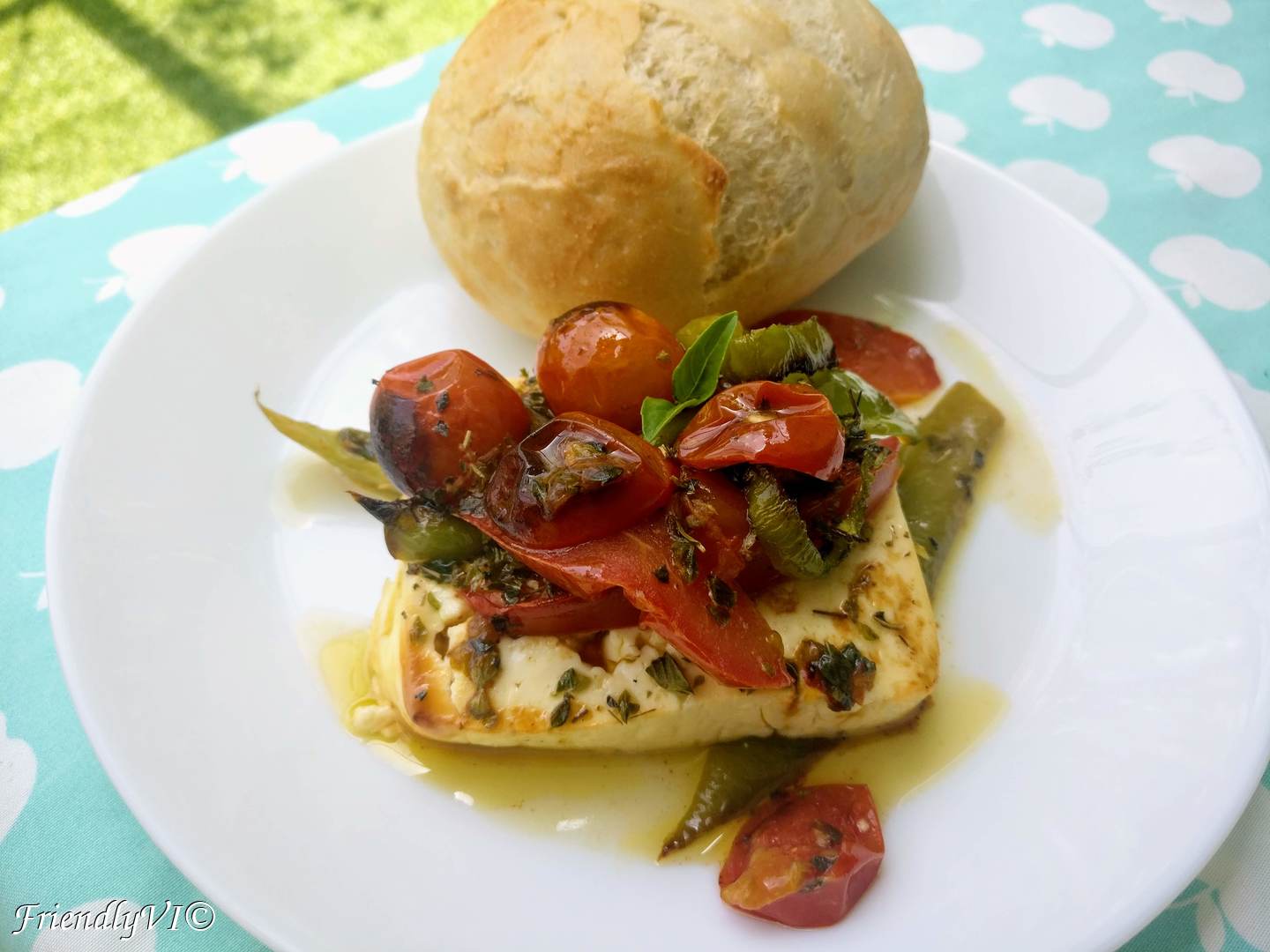 Baked feta with tomatoes and pepper – quick Greek lunch