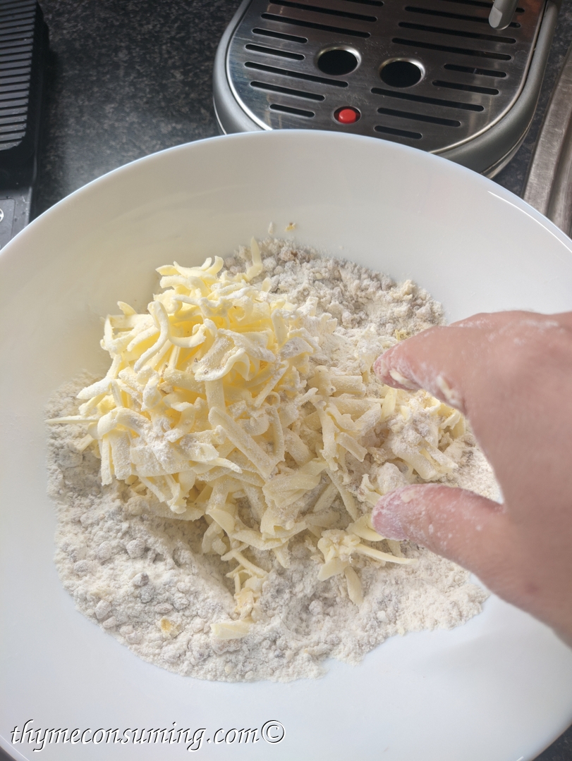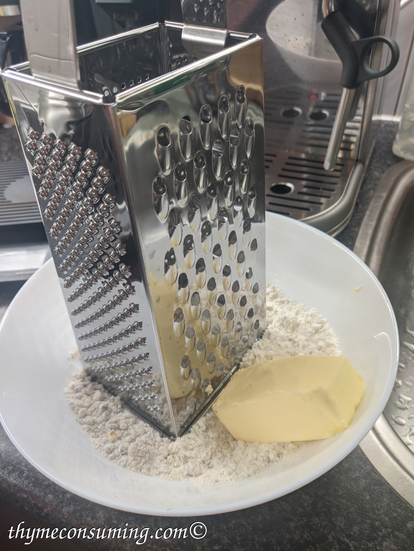 - Grate in the cold butter.