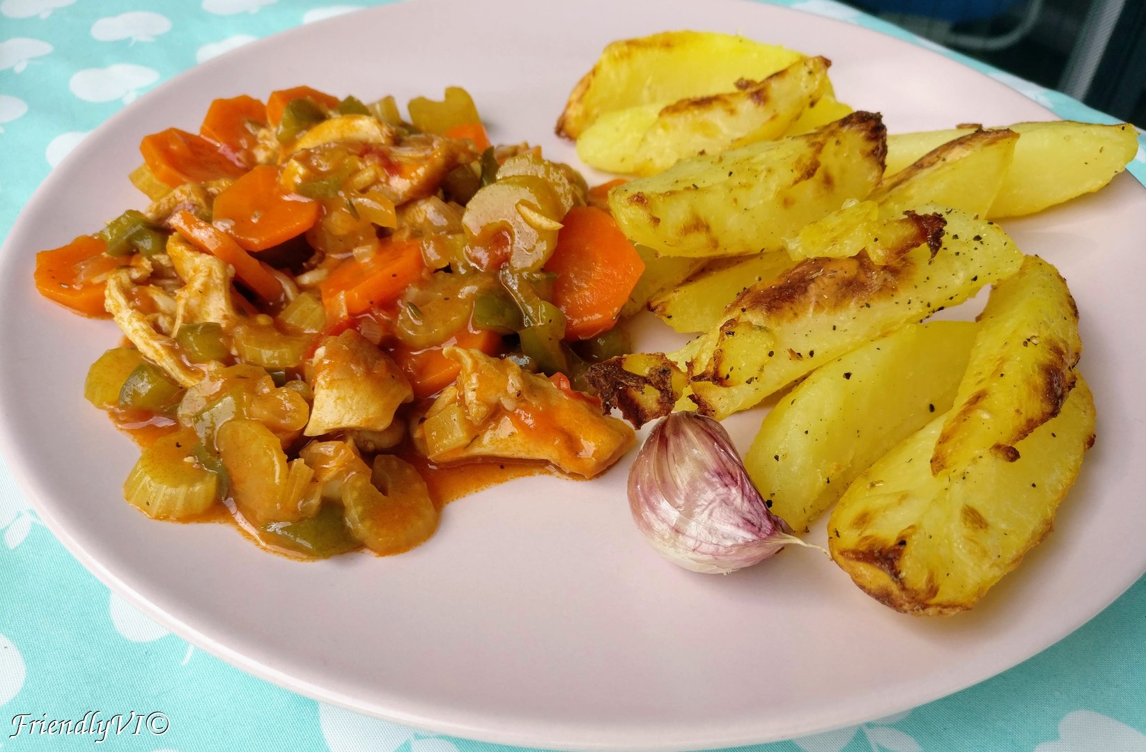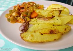 Rabbit stew with baked potatoes