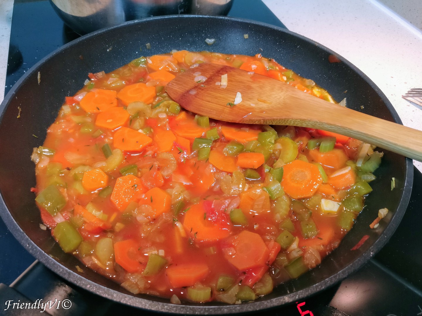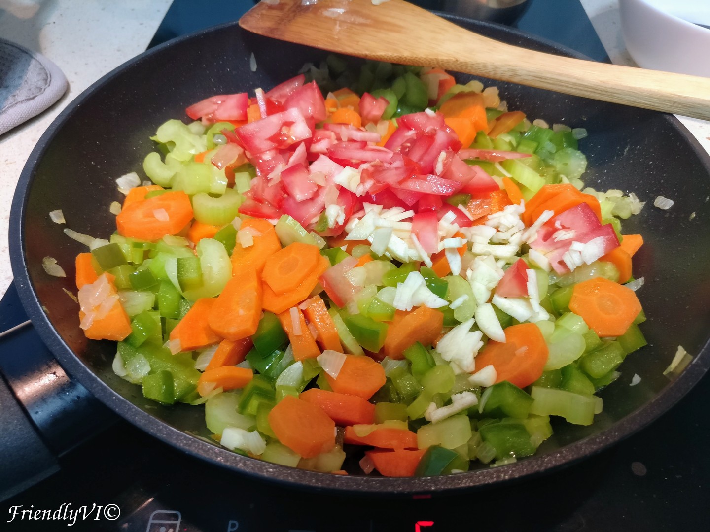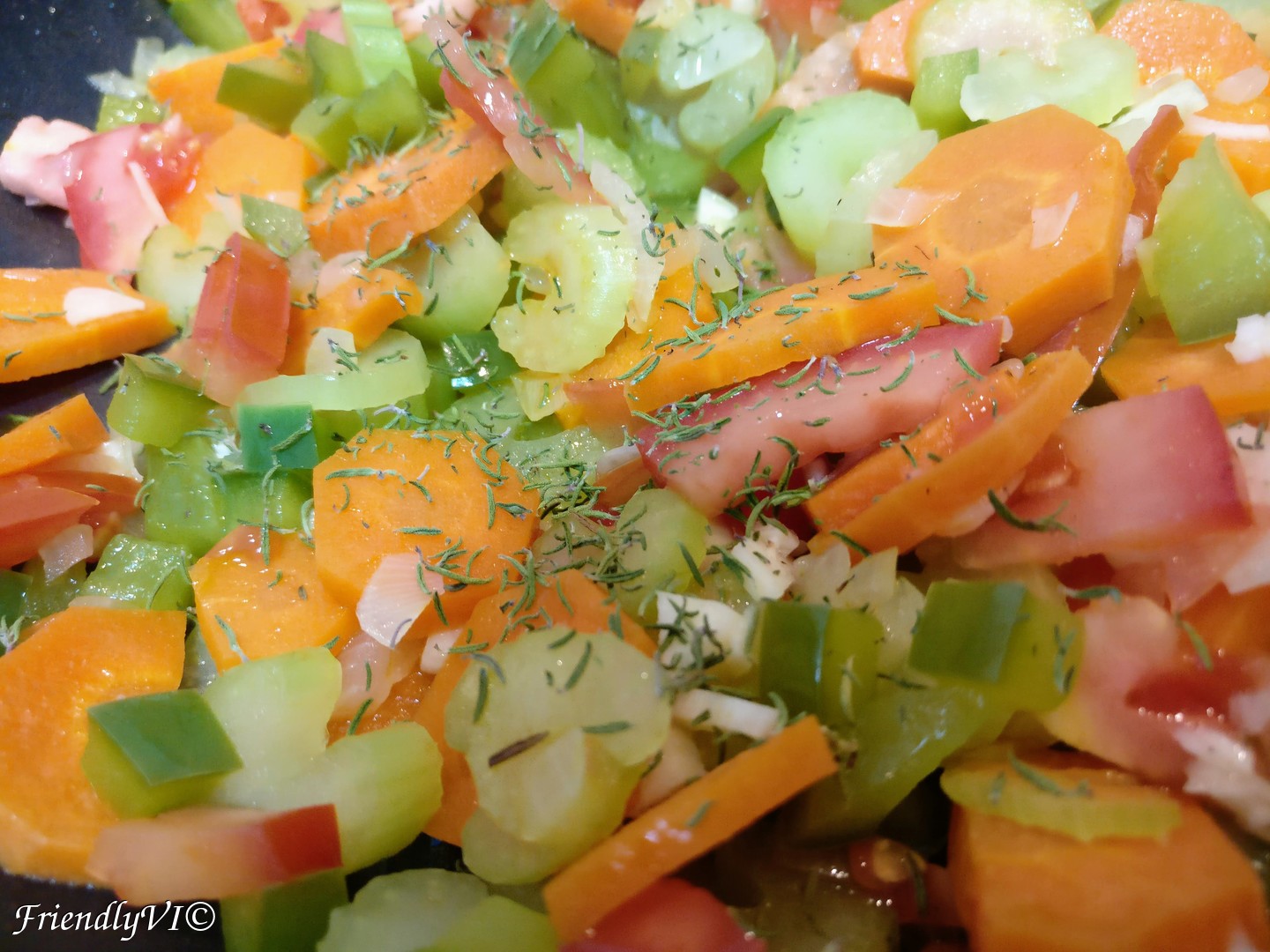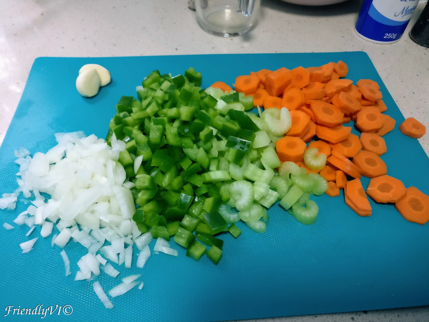 - While the potatoes are cooking, cut the carrot, celery, pepper and onion.