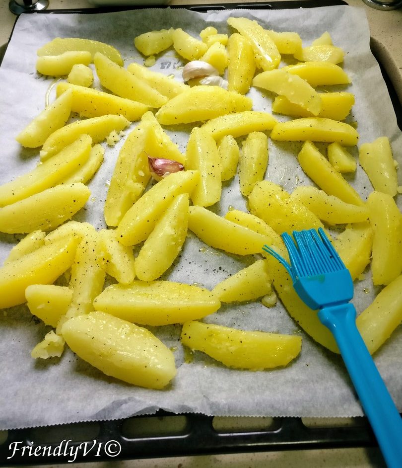- Scratch the potatoes with a fork so that they look a bit crumbled. This will help them to get crunchy.