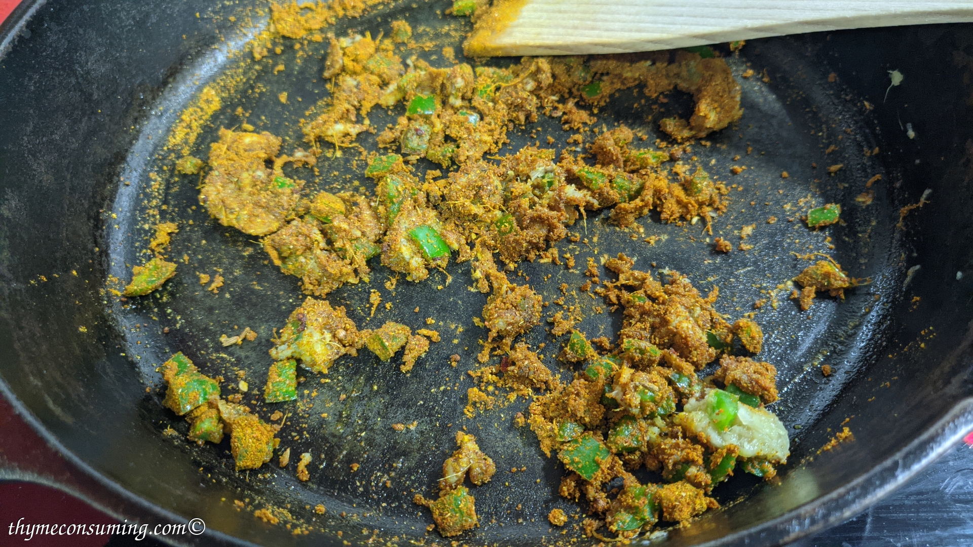 - Once they soften, add your spices.