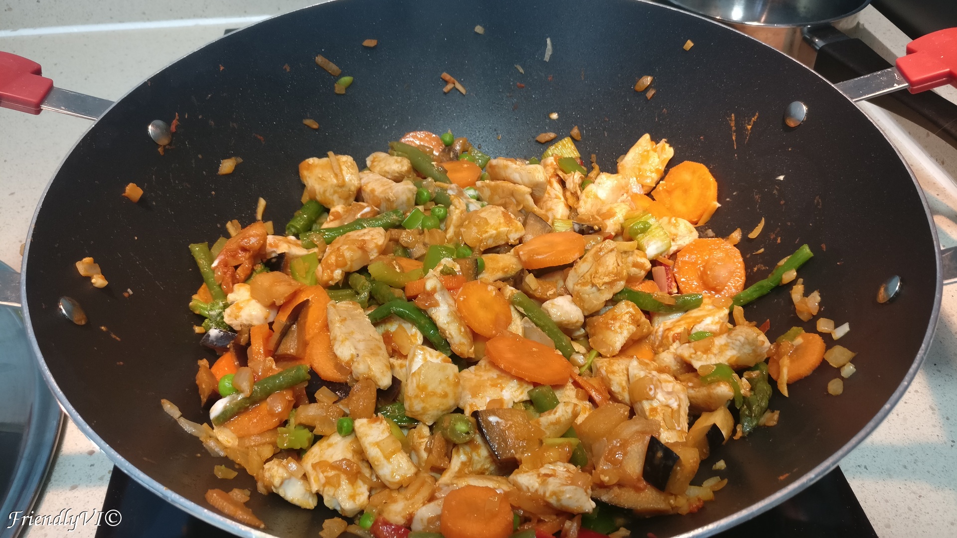 - vegetables: green beans, red pepper, carrots, pak-choi or any of your preference (~1.5 eur combined)