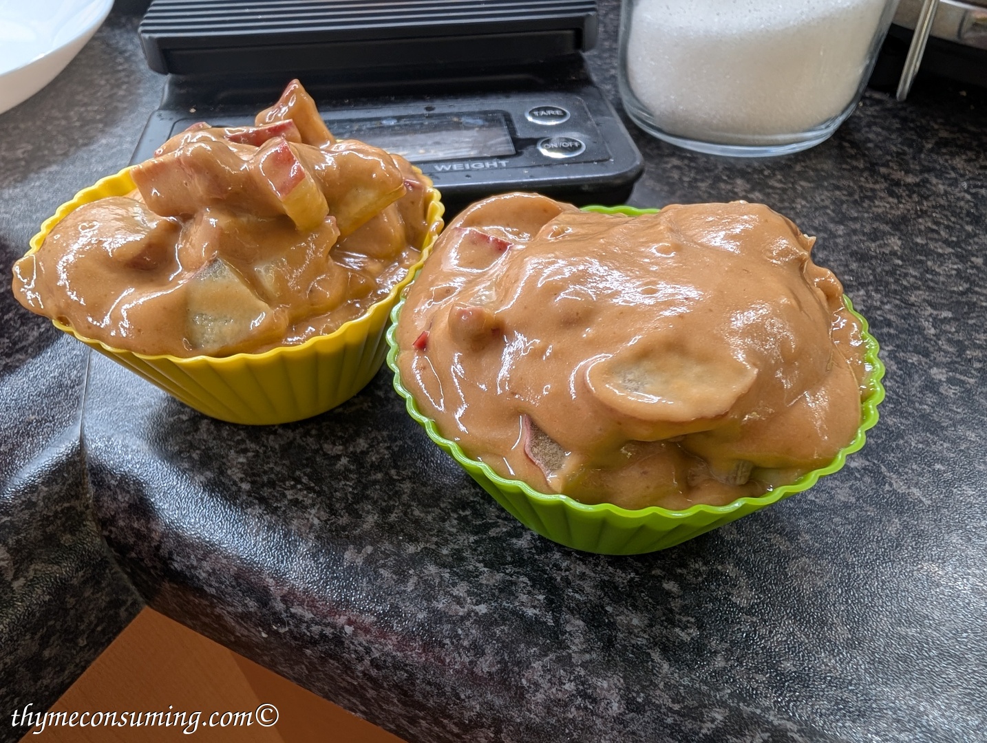 - Scoop the dough in 6 muffin shapes.