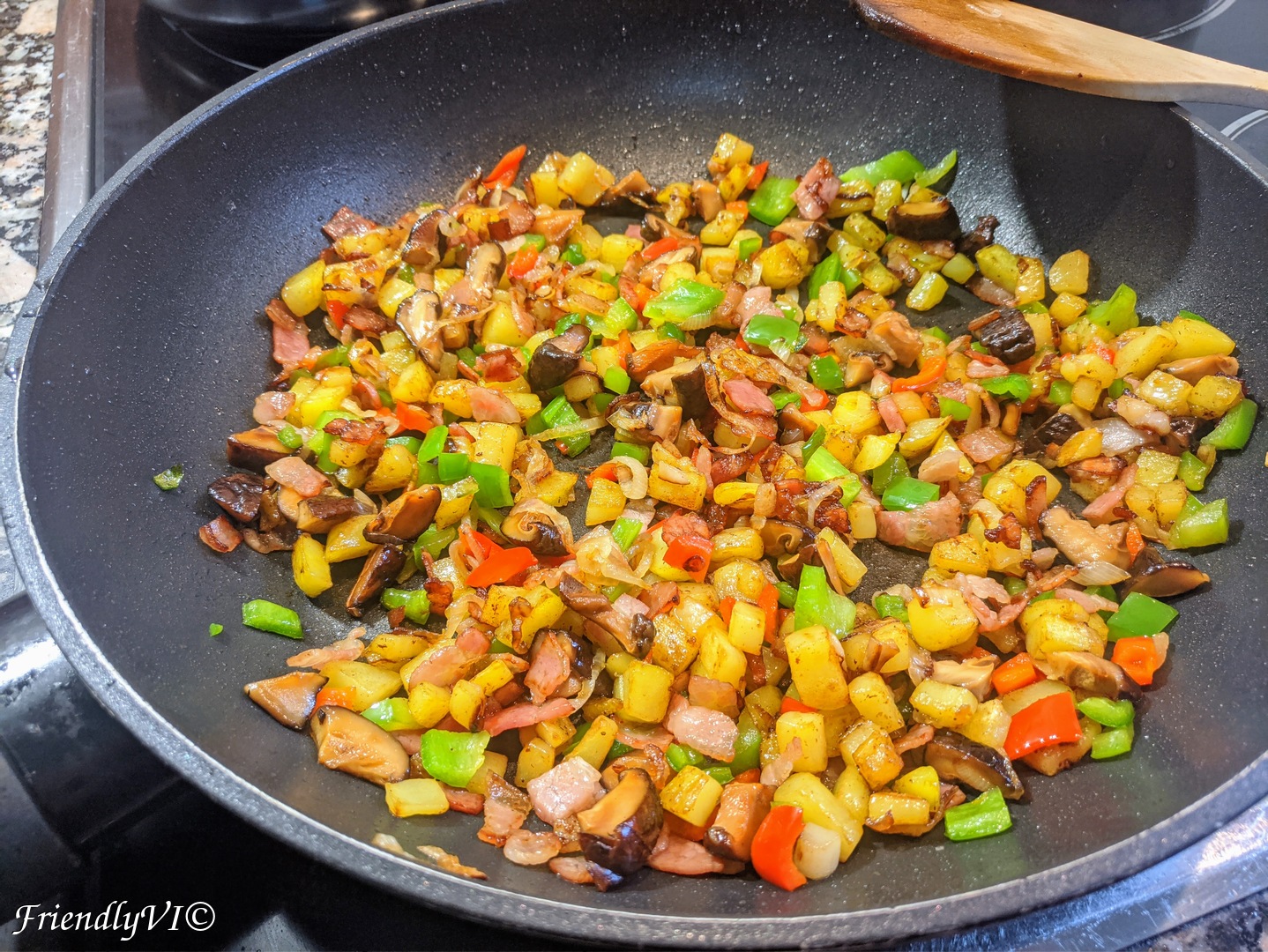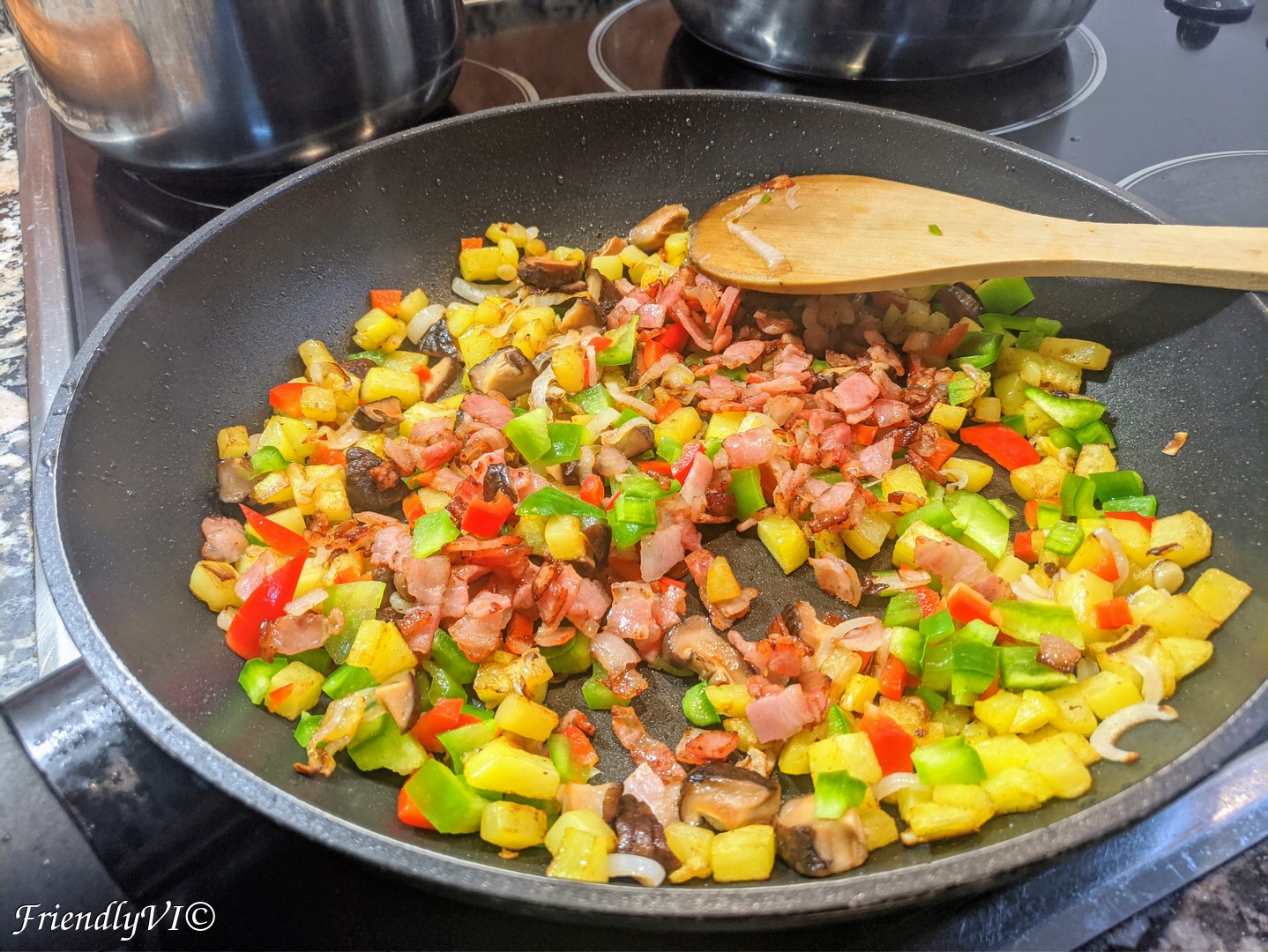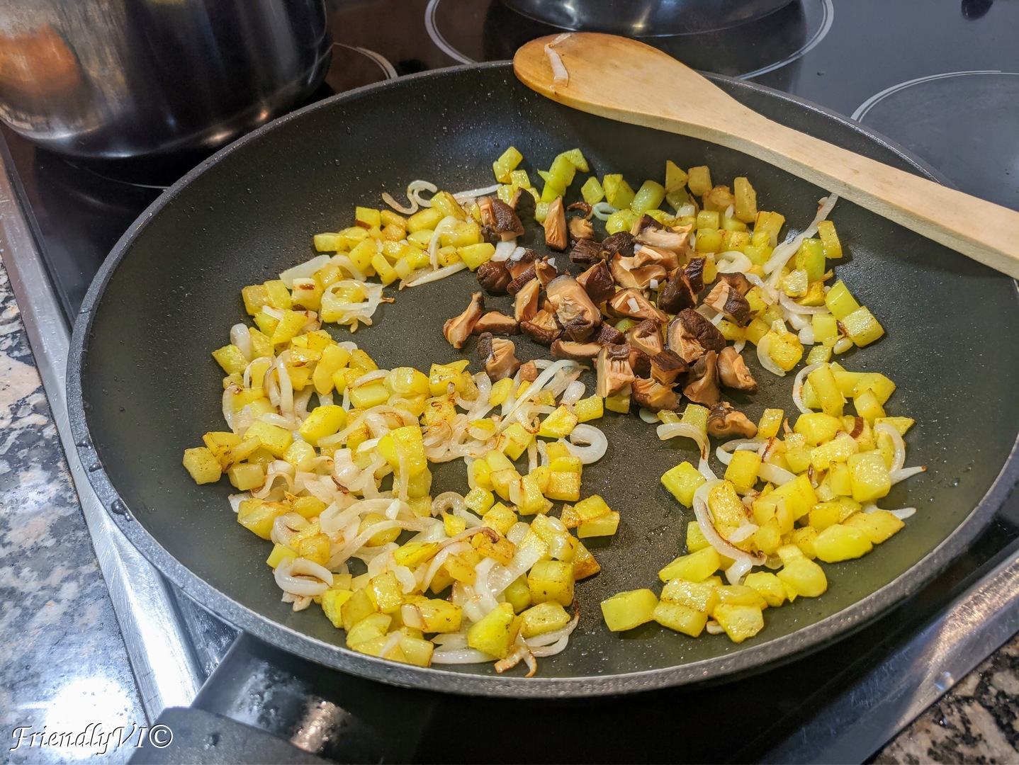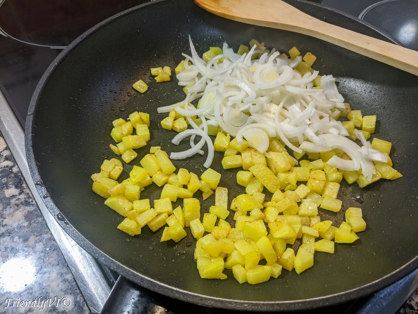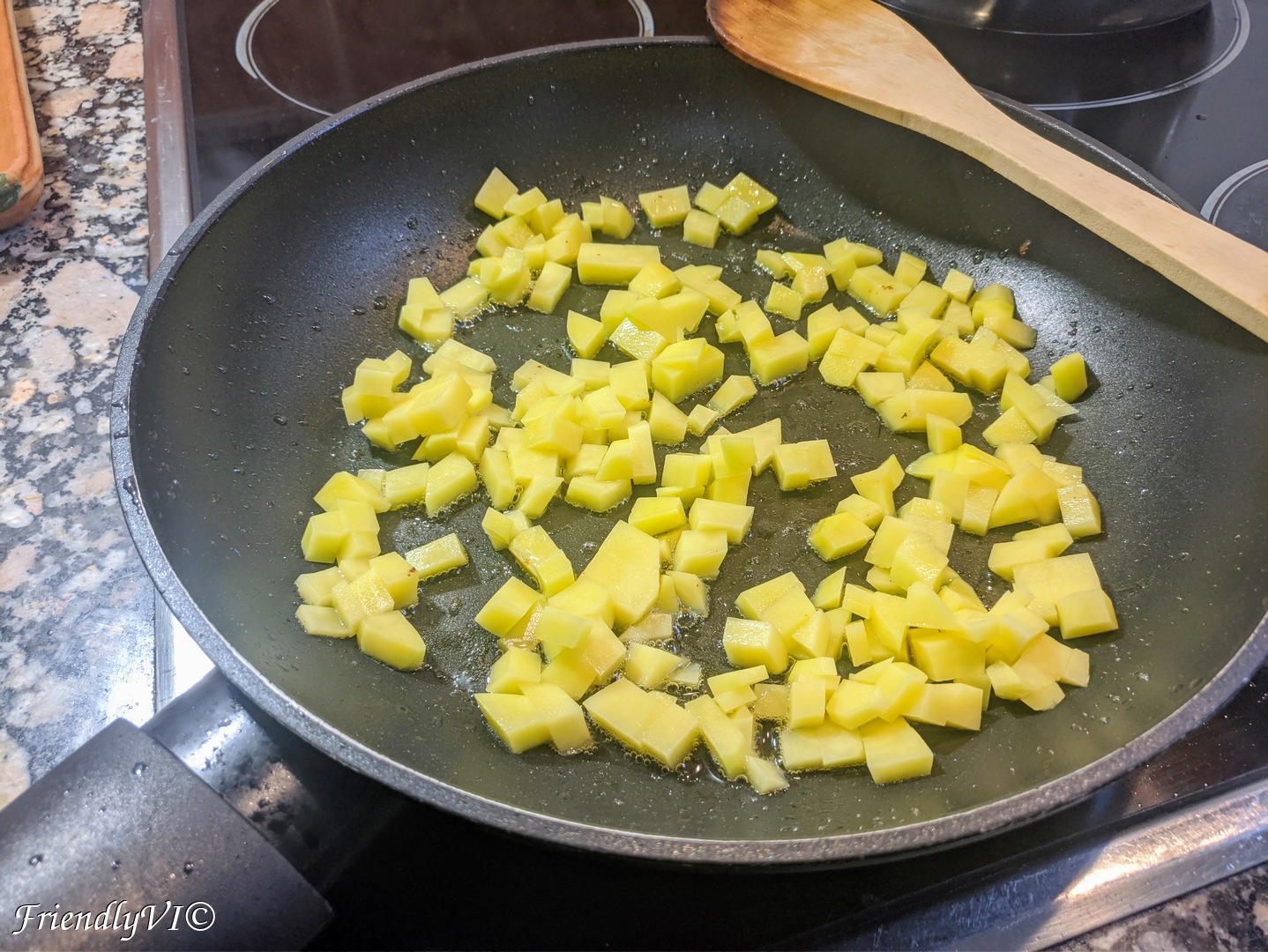 - Cook the diced potato until slightly colored.
