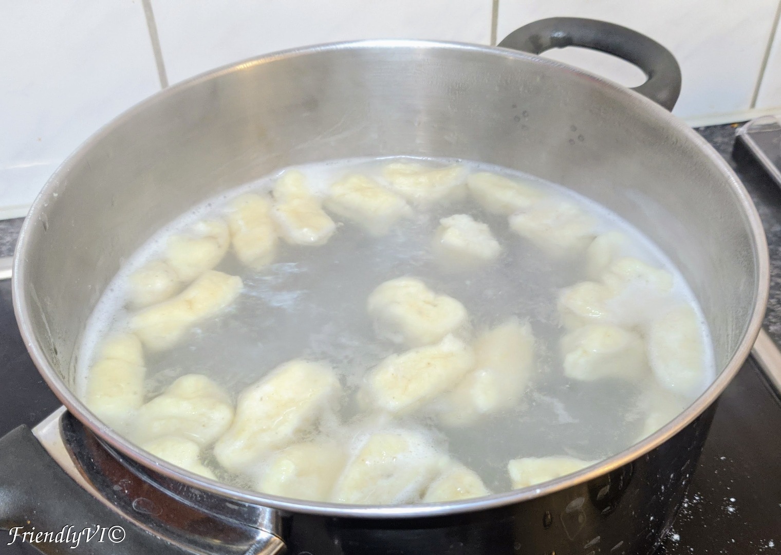 8. Add the gnocchi to the boiled water and boil them on medium-high fire until they start floating. It will be very fast 3-4 min.