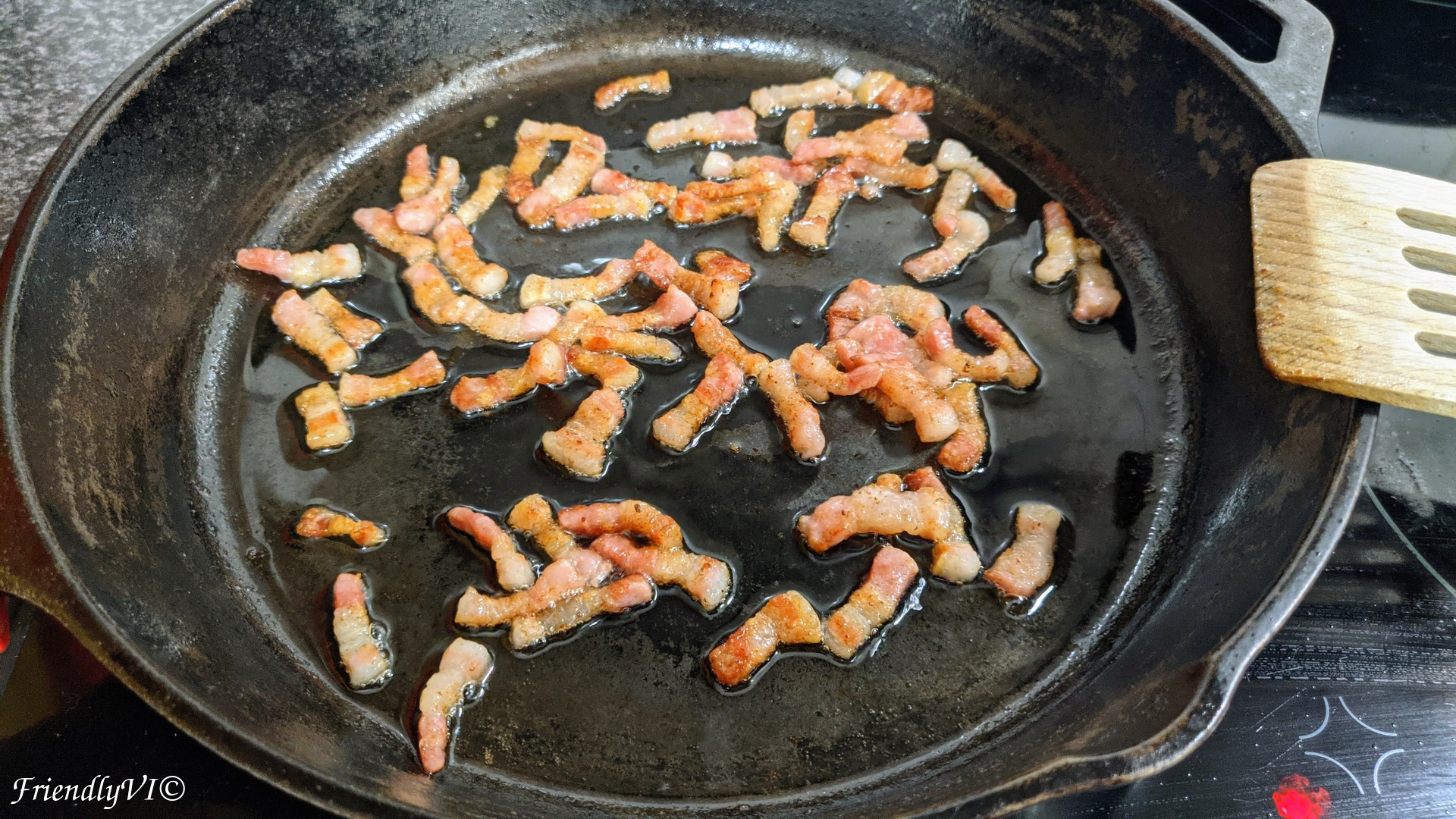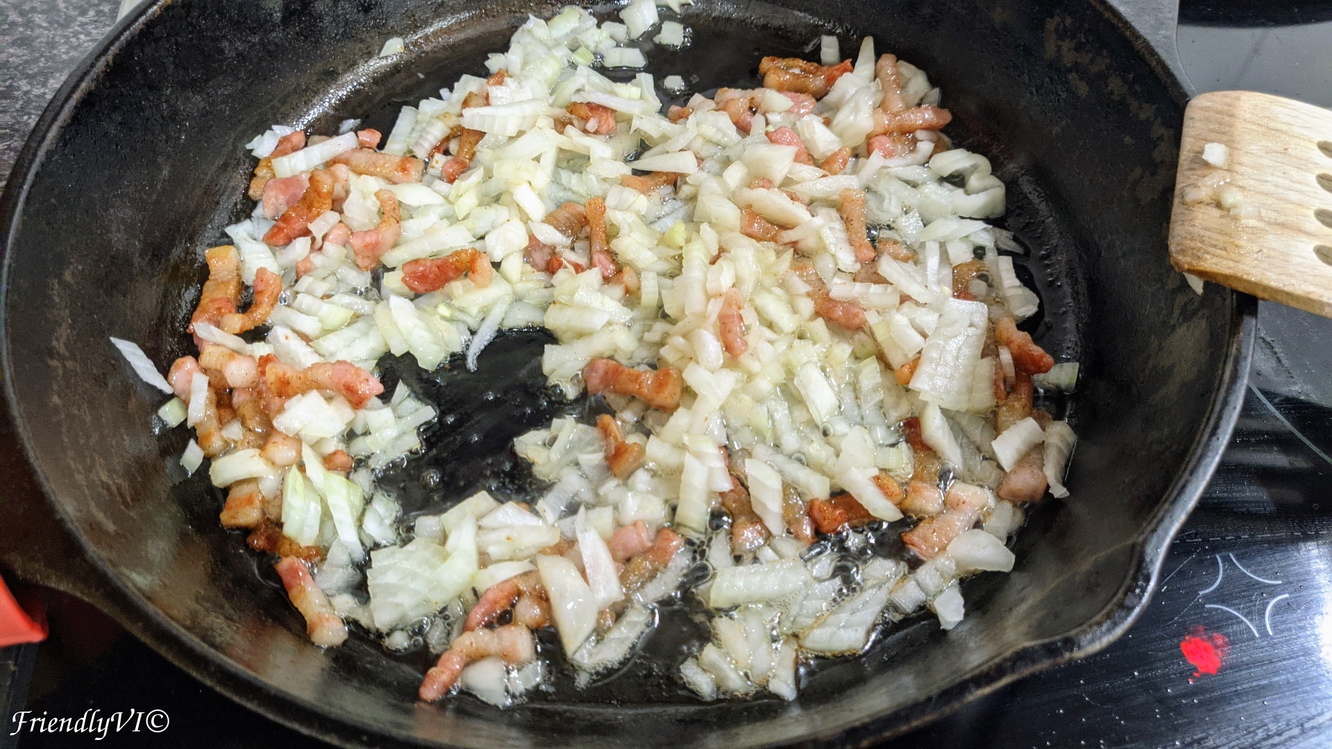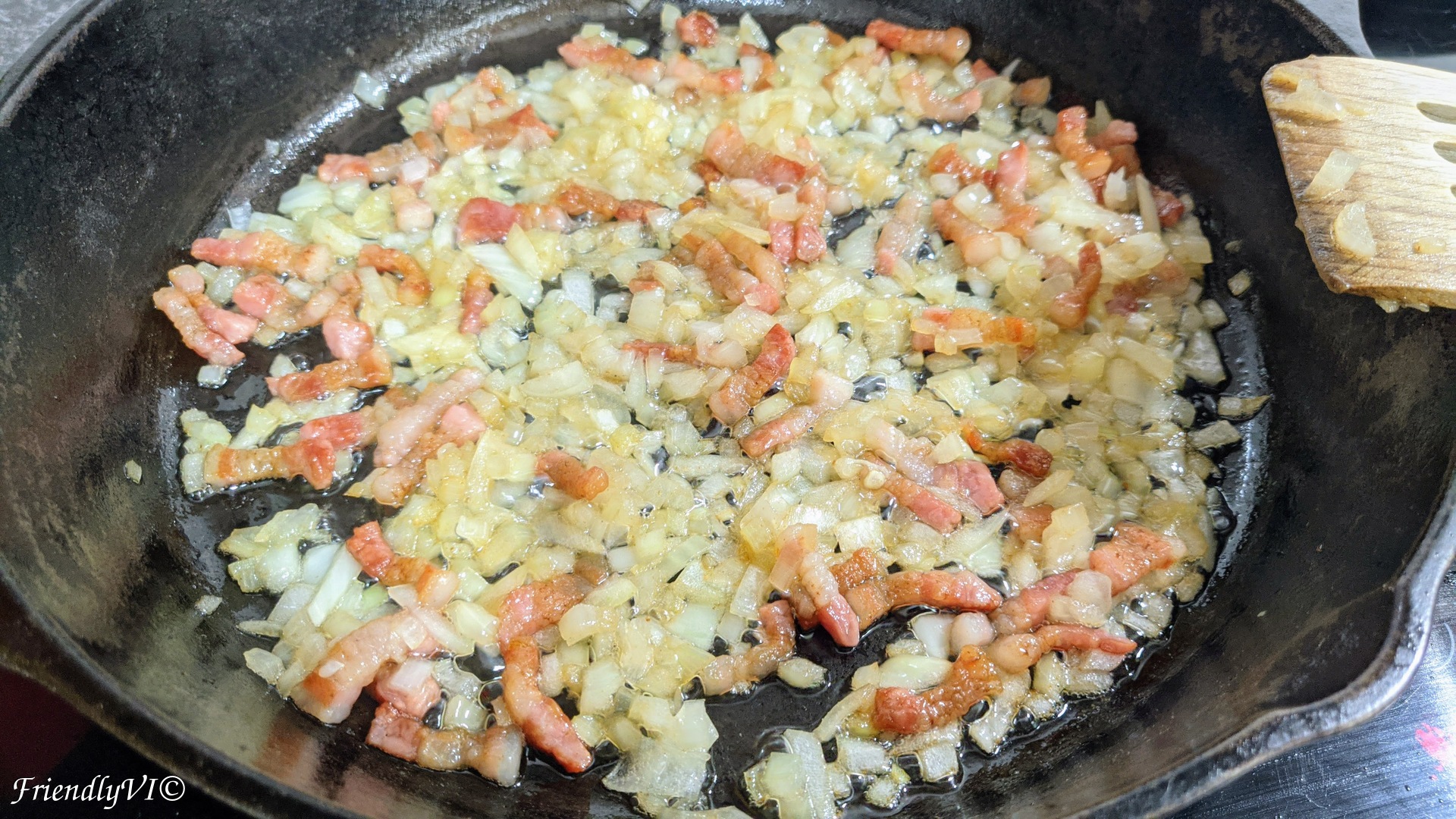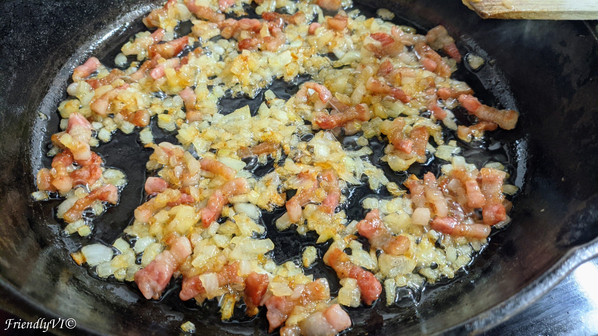 - The best pot to make this dish in is cast iron. Start melting the chopped bacon on very low fire until it releases almost all the fat.