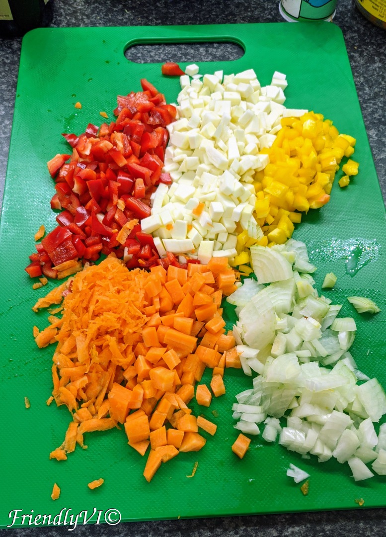 2. In the meantime, cut all the veggies. It is best if you grate the carrots for a better color.