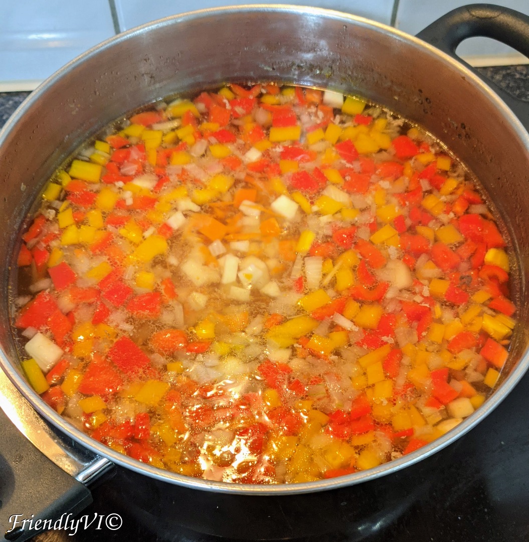 5. When the water is boiling again, add the veggies in. Add the laurel leaf now as well, if you like it.