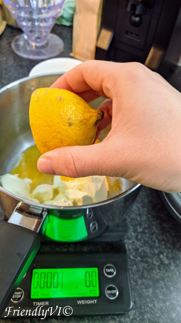 7. Mix the sour cream, egg yolks and the 50 ml of fresh lemon juice.
