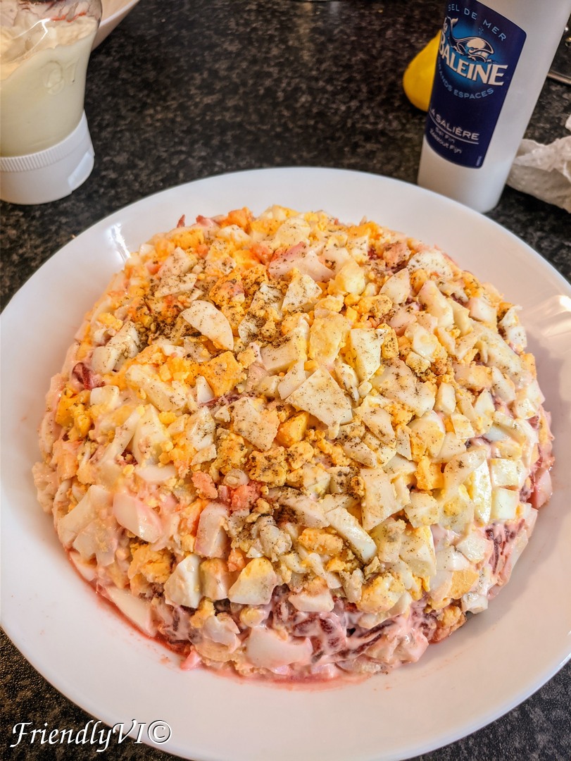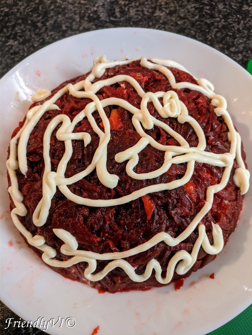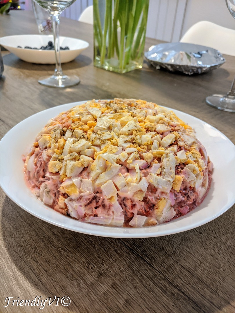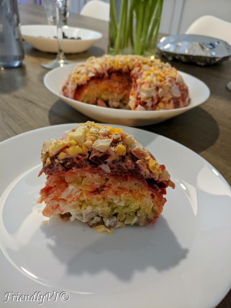 Russian cuisine has a few classical favorite one. Color wise, selyodka pod shuboy (translated as herring under a fur coat… so Russian!) is my favorite. If you like fish, taste wise is pretty nice too! Besides, it is traditional to make this time of the year.