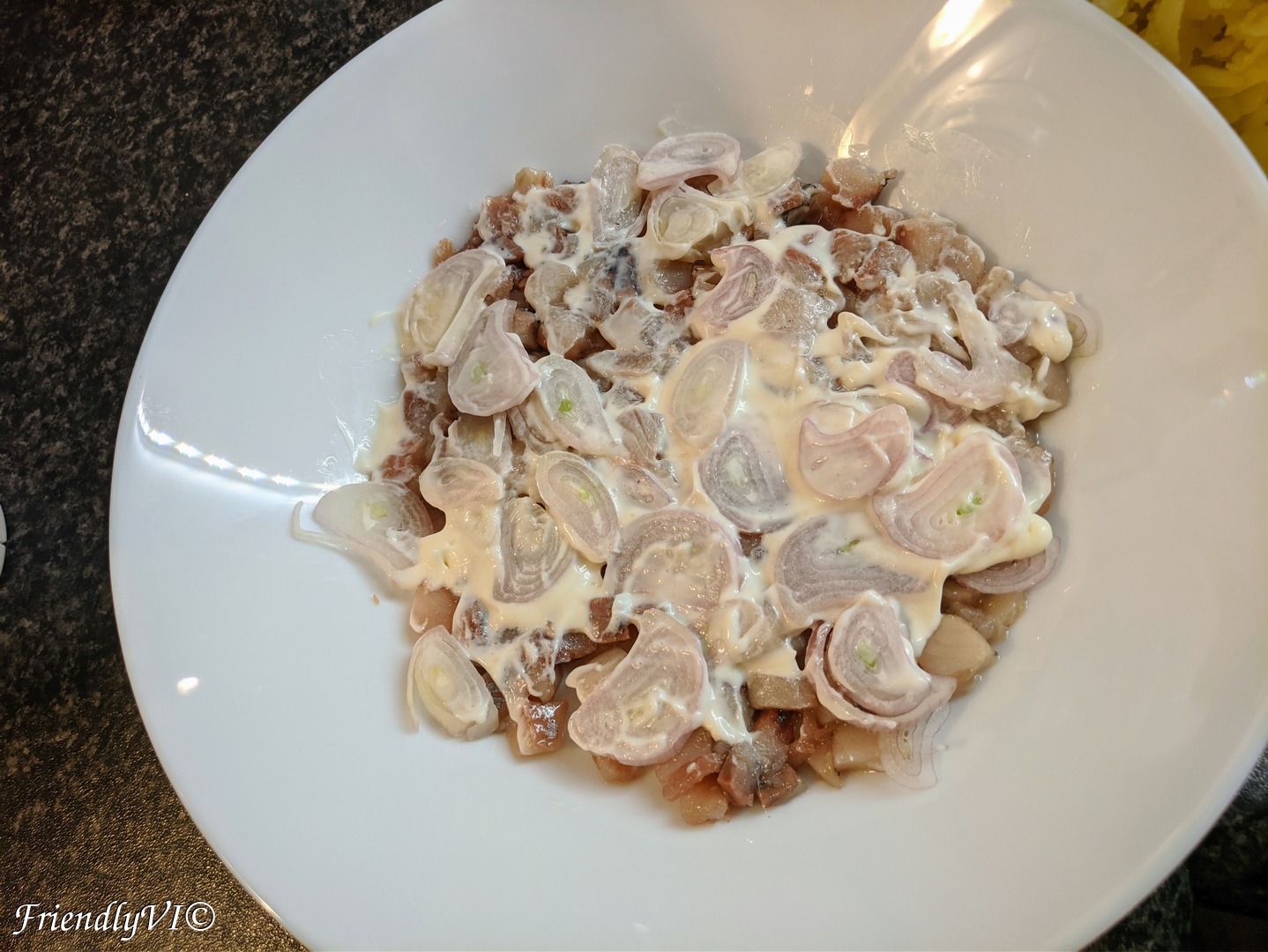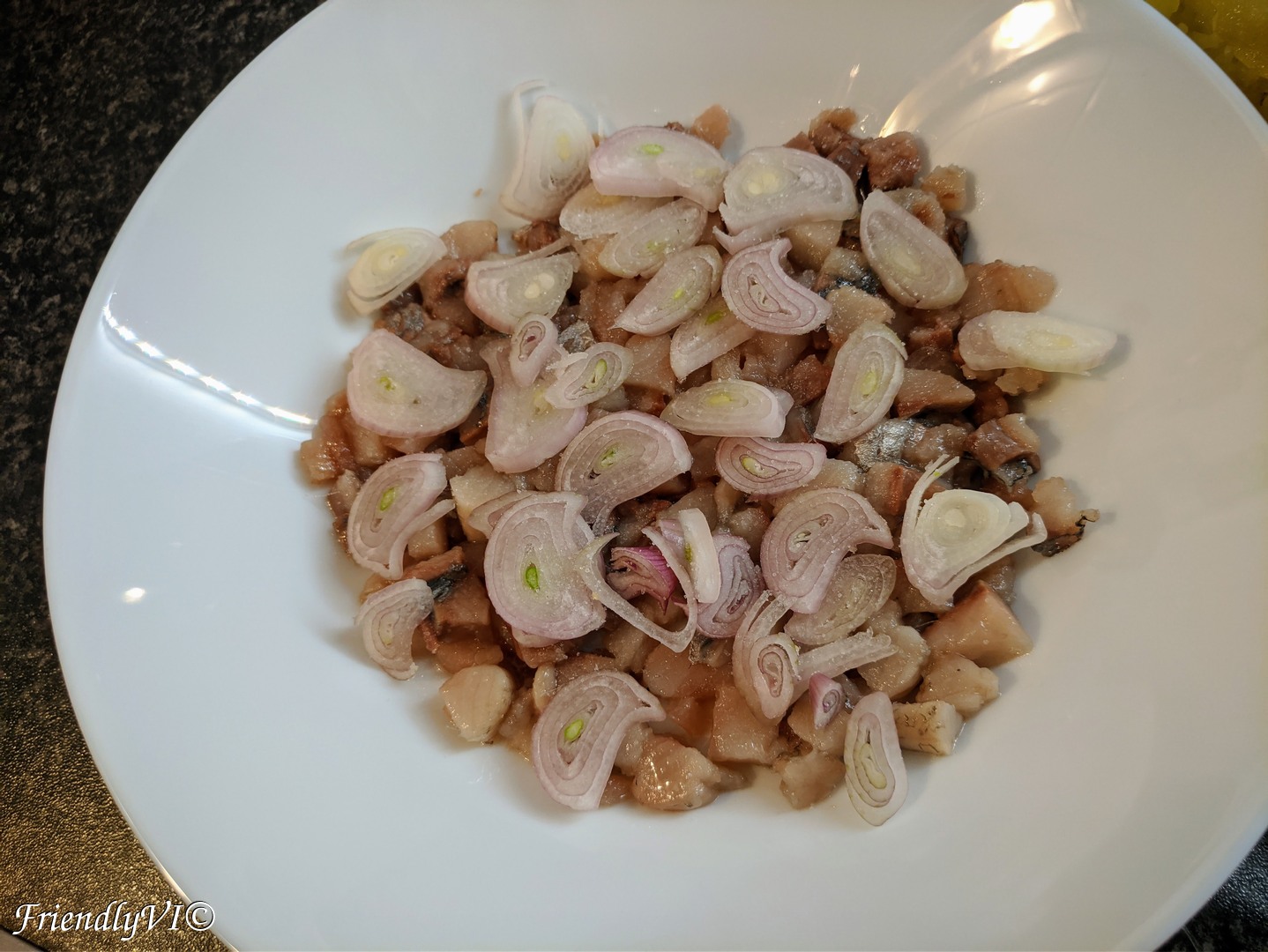 - 2-3 slices of smoked herring (from a non-Russian perspective, any other fish would work for me)