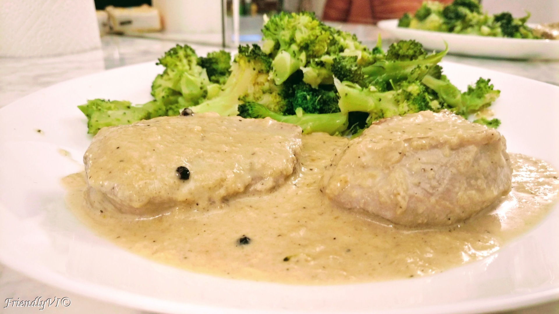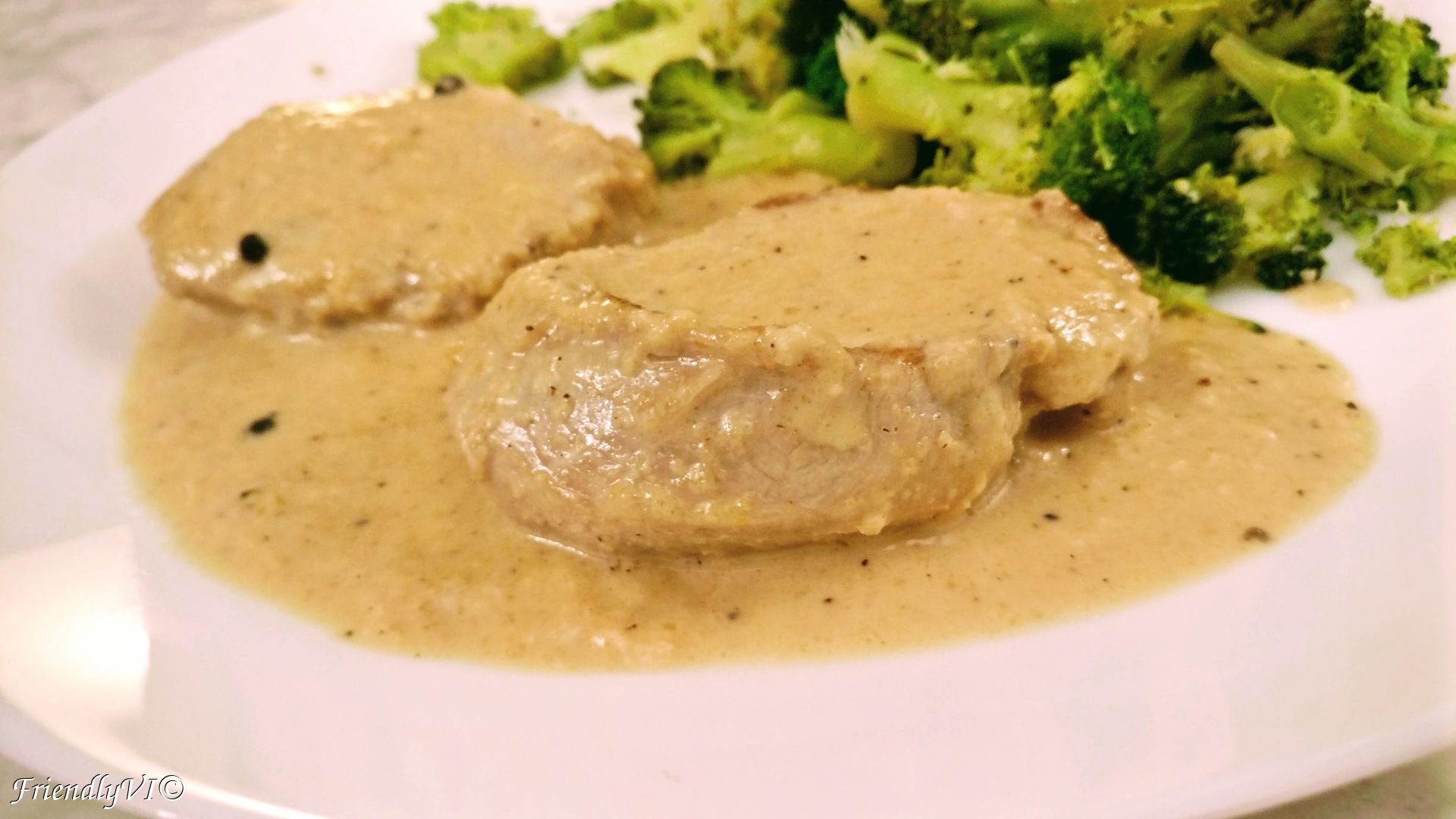 11. It is ready to be served with whatever side dish you want. I opted here for buttered broccoli, but it can be anything.