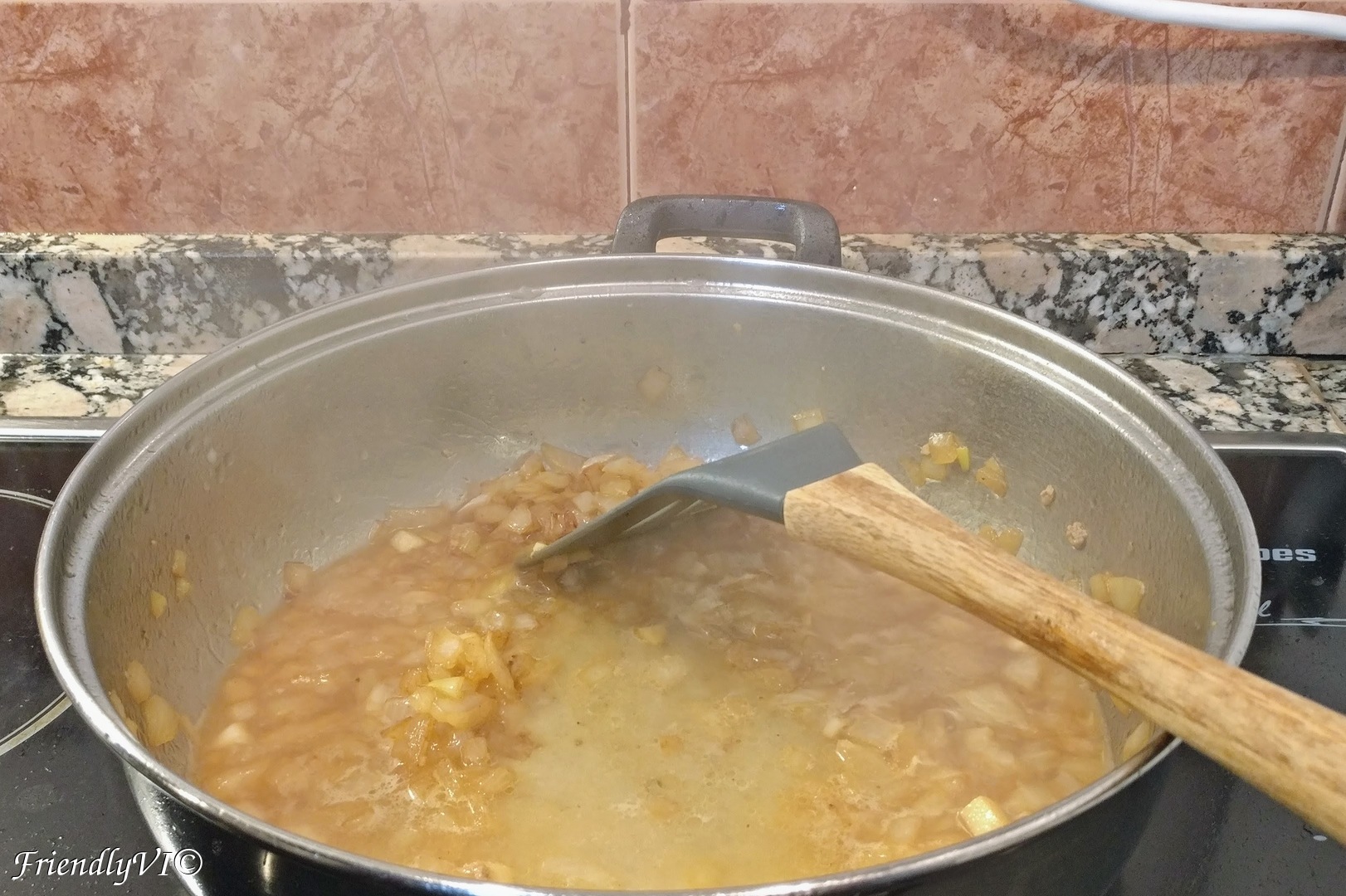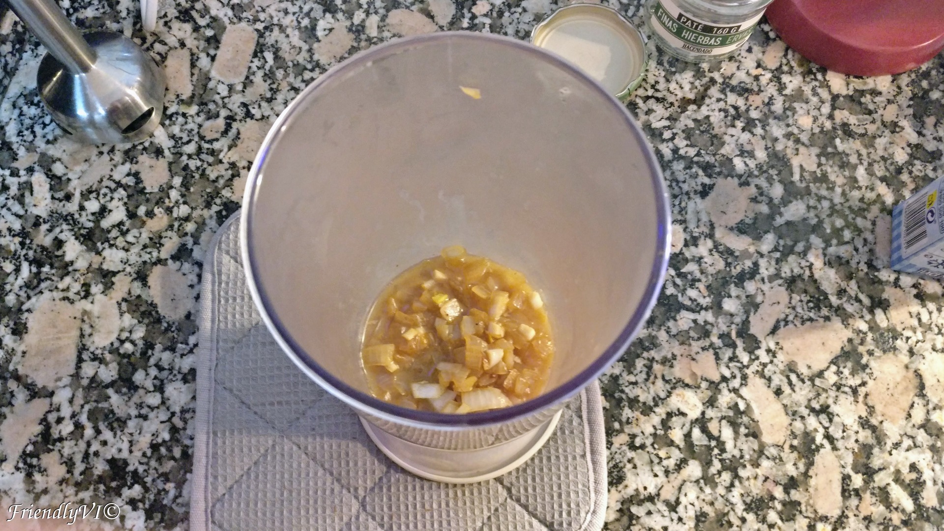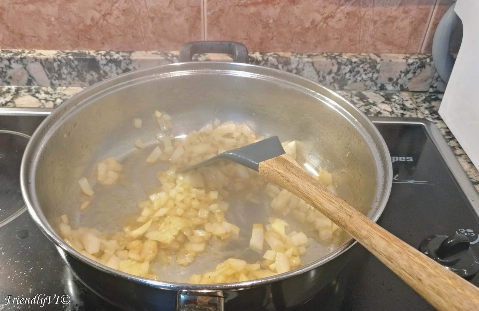 6. In the same pan start sauteing the cubed onion until golden and then add the diced garlic too.