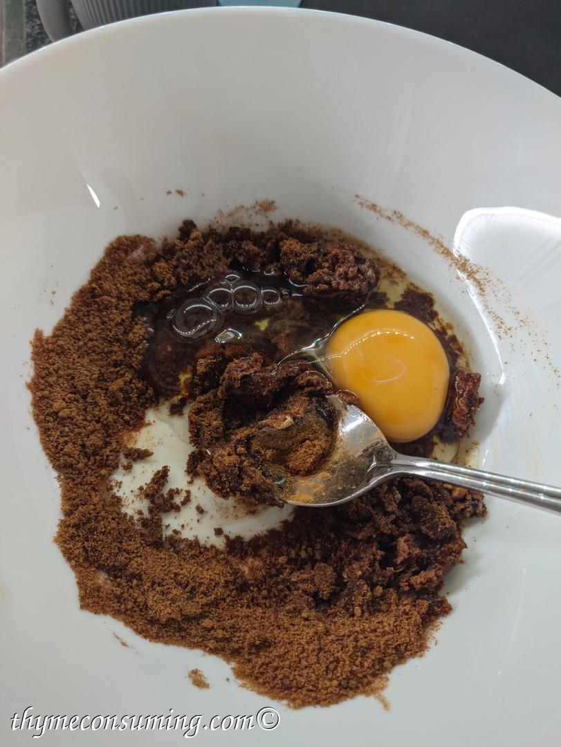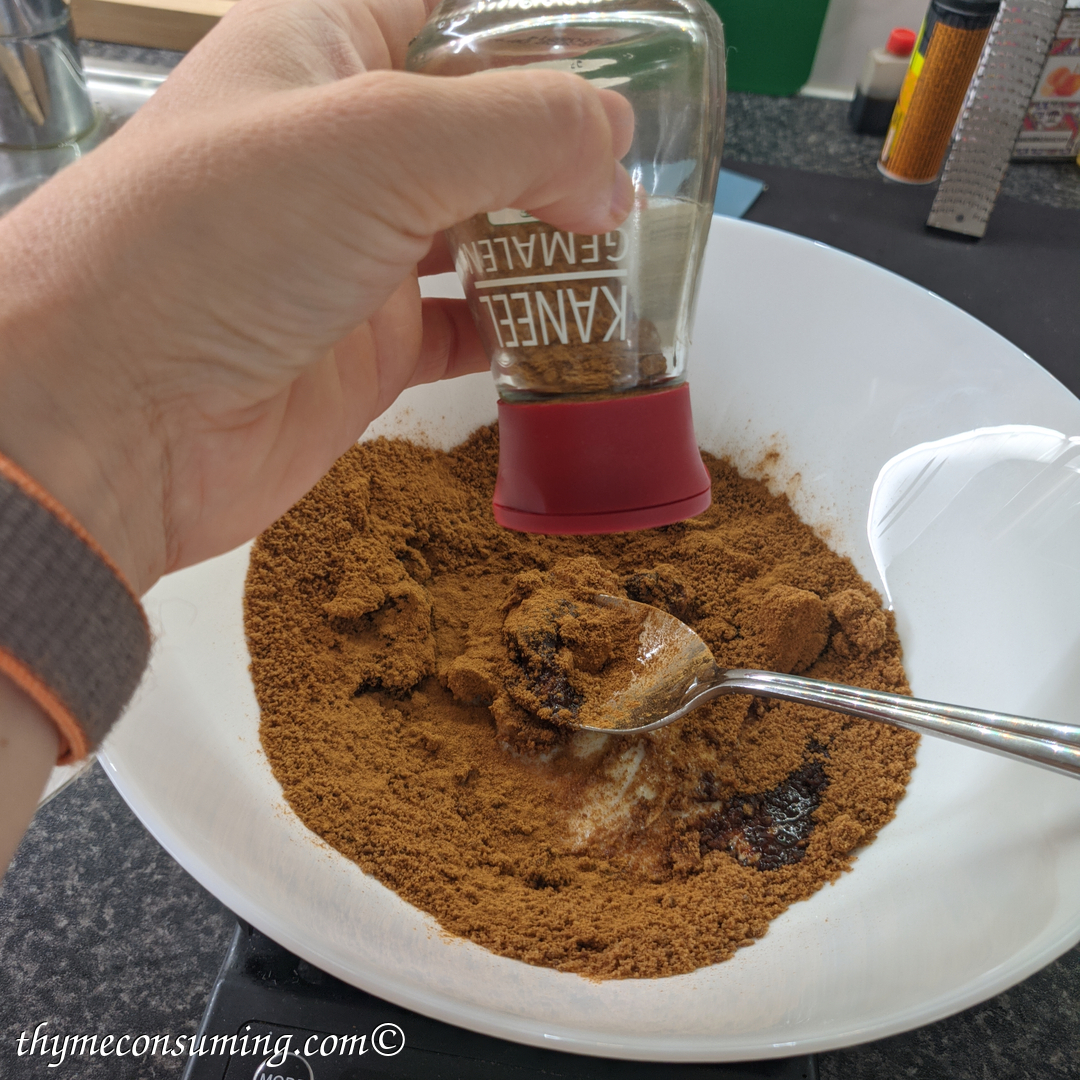 - Add the cinnamon and the egg and mix well to dissolve the sugar.