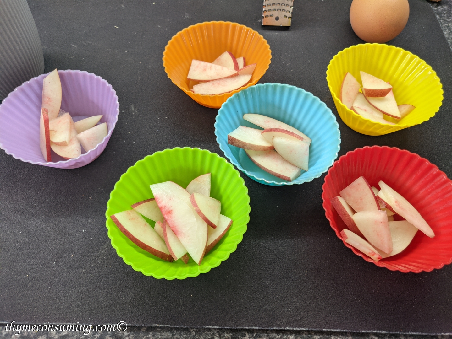 - Mix in the thinly cut nectarine. I add it sometimes at the bottom of the muffin. But I think it works best if I mix it in.