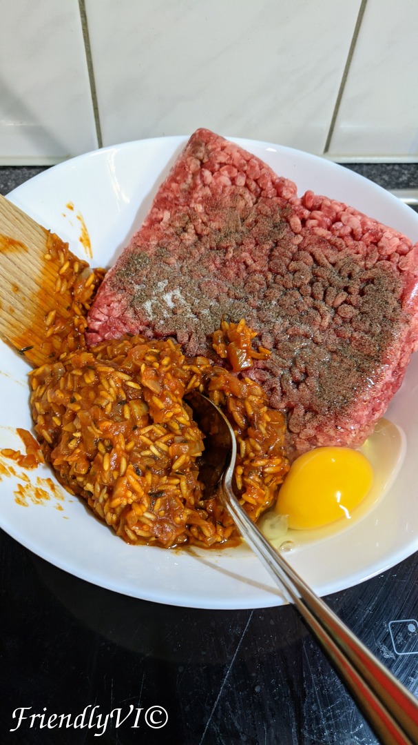 - Pour the sauté mix over the raw minced meat and mix very well. Make sure the mixture is not too dry and difficult to maneuver. In the case, you can add a bit more water.