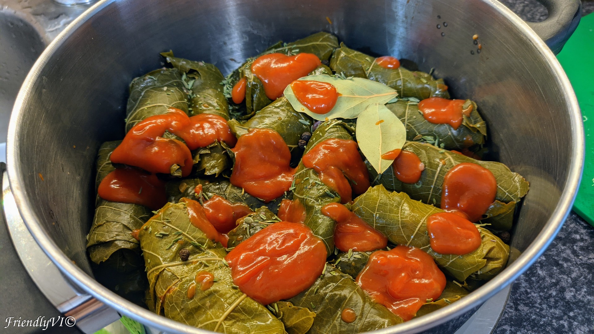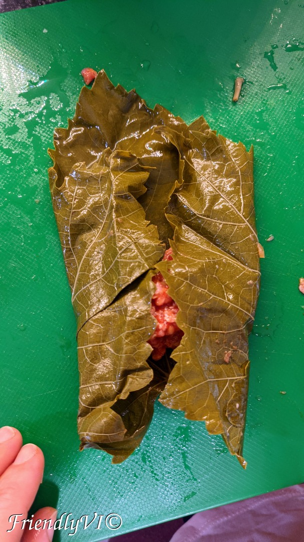 I find it so resourceful to use the vine leaves for cooking. And they have a very special taste. The filling I use is identical to the Romanian classical sarmale: https://www.thymeconsuming.com/romanian-sarmale-or-meat-rolls-wrapped-in-cabbage/.