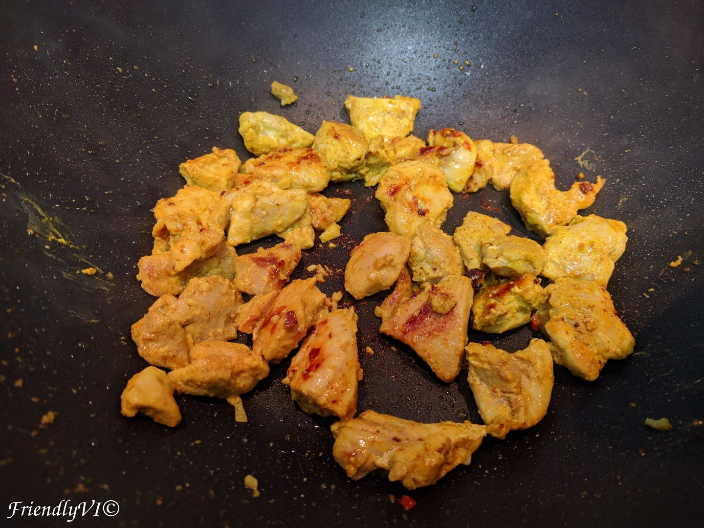 1. In a bowl, combine chicken with all of the ingredients for the chicken marinade and let marinate for 1-2 hours.