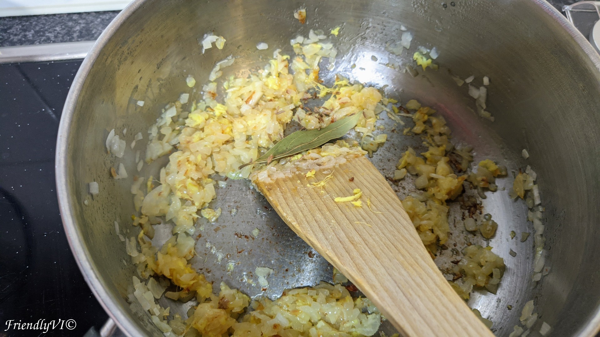 - For the sauce: saute the onions in the oil until they are very soft. Add the ginger, garlic, bay leaf, cumin seeds and chili flakes.
