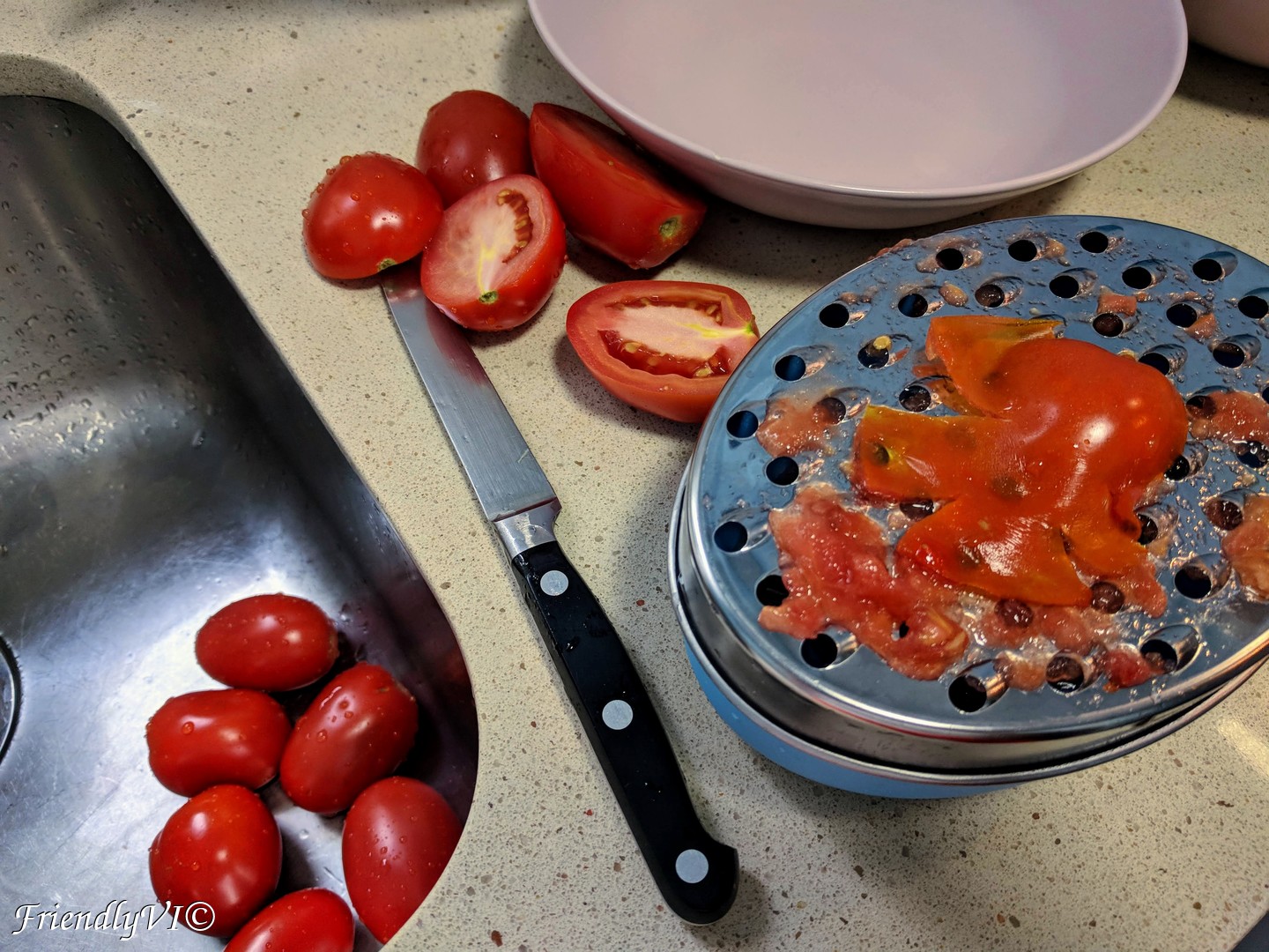 - Grate the tomatoes.
