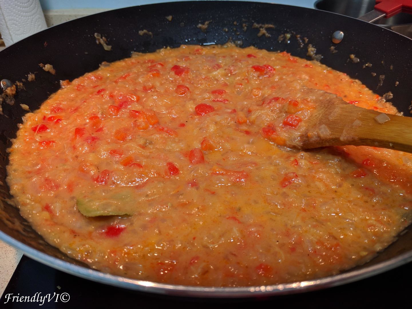 - Add the chopped pepper.
