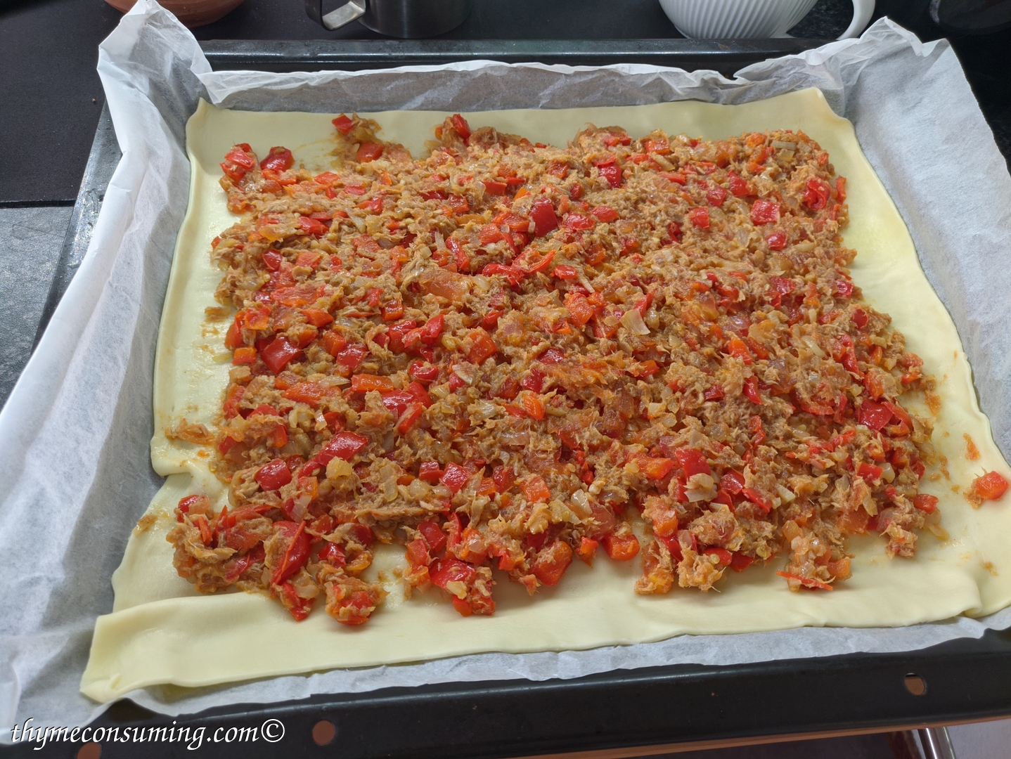 Tuna is one of my favorite sources of protein. The Spanish empanadas de atun are a great meal for this. There are of course recipes to make the dough yourself, but for me the beauty of making it myself is to get the shortcut with using filo pastry.