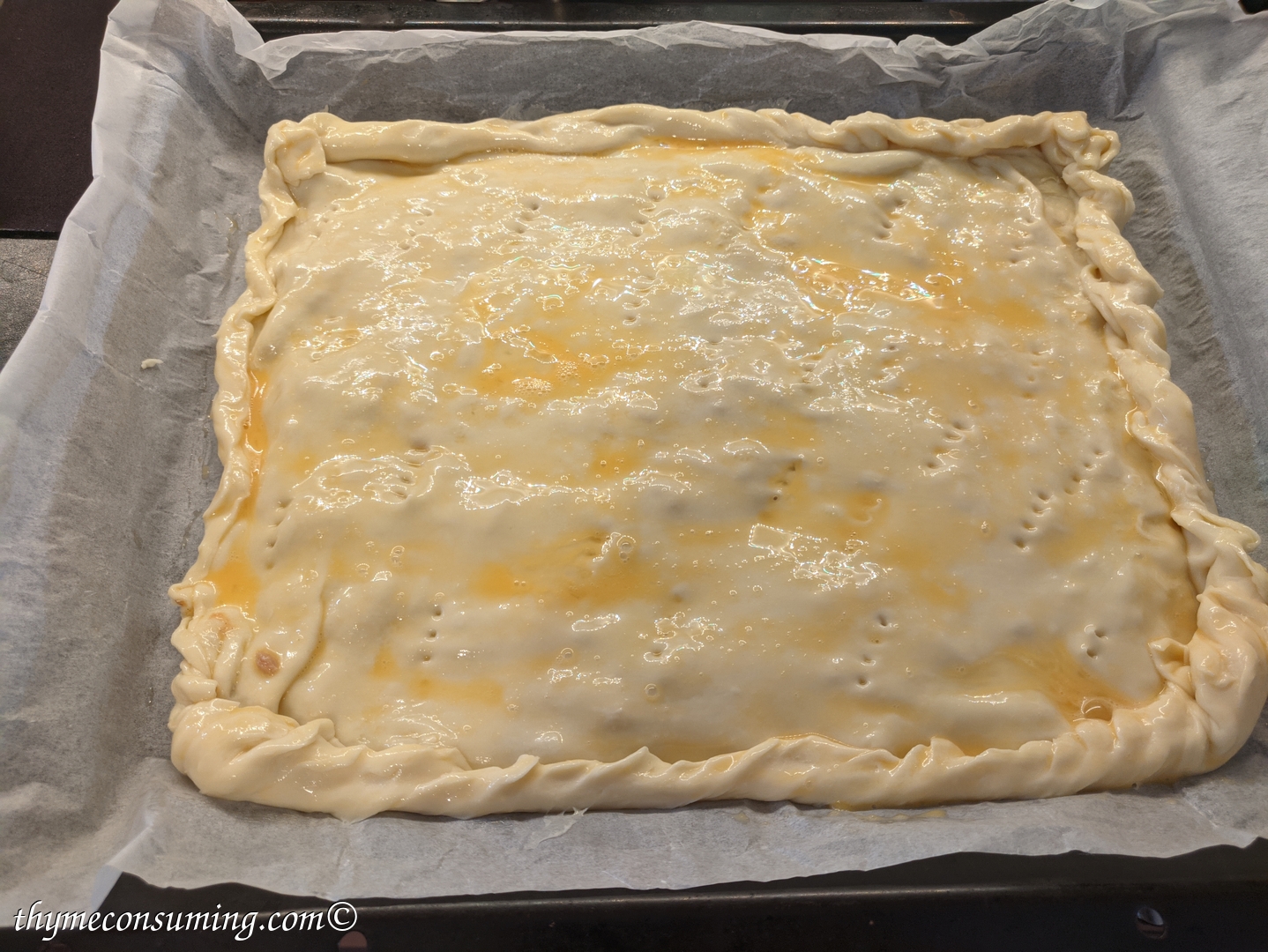 - Add the other filo sheet on top and combine them so that the filling won’t come out.