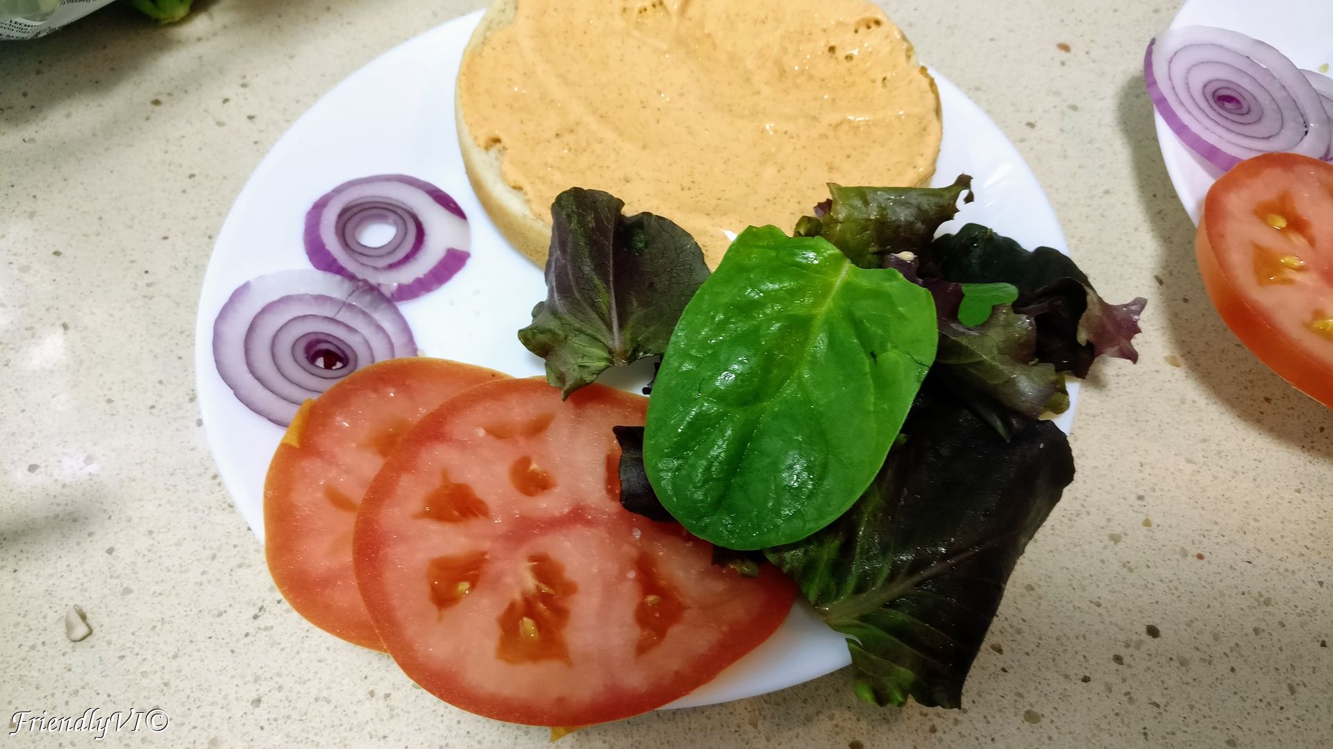 - Arrange it the way you want, but make sure to add lots of mayo, salad, red onion and tomato.
