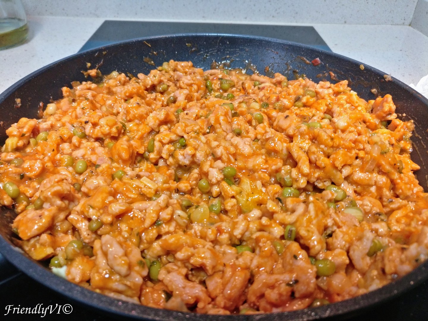 1. In a hot pan add 2 tbsp of oil and start frying the meat, with no salt or onion, just by itself until it gets brown.