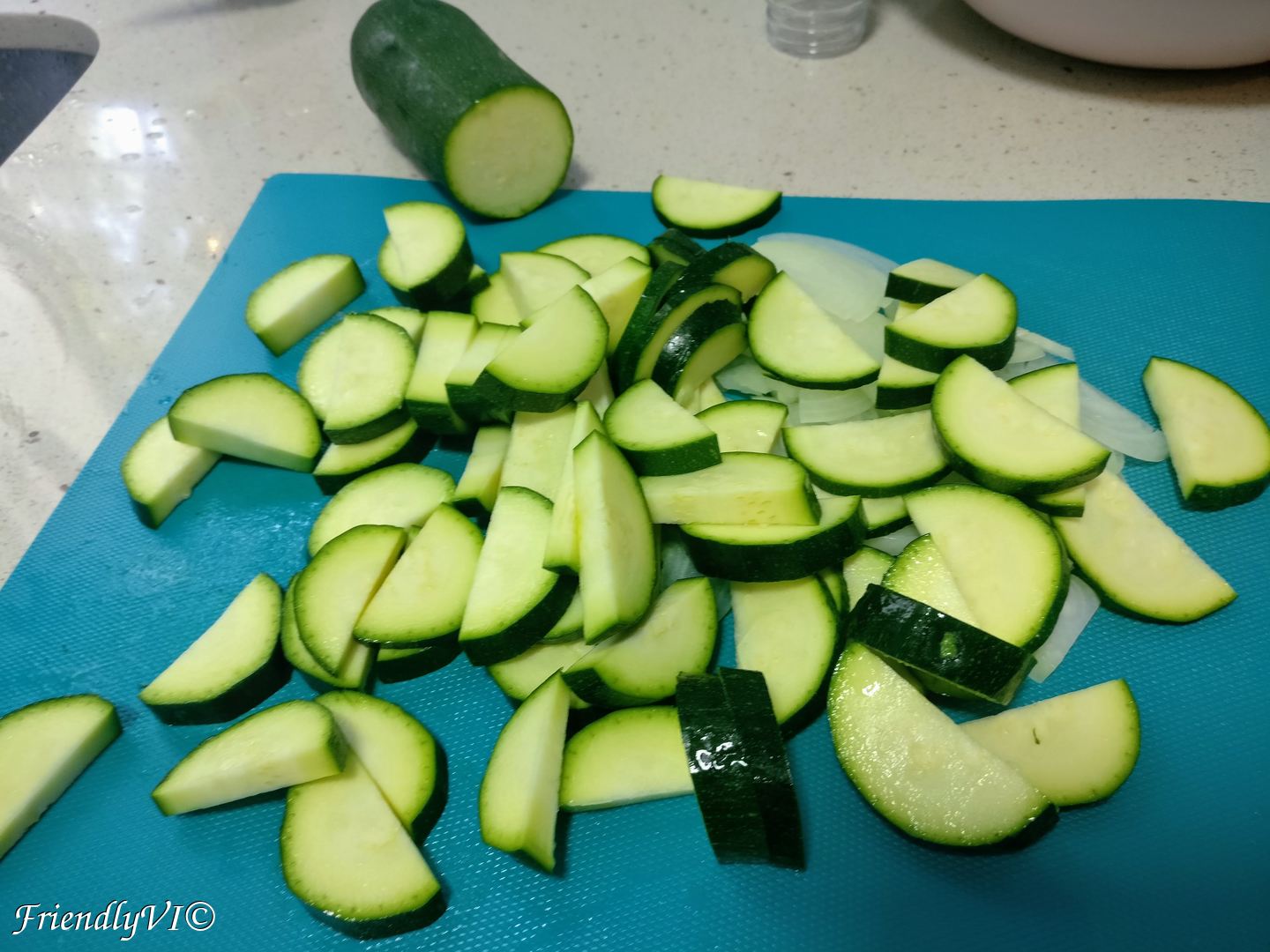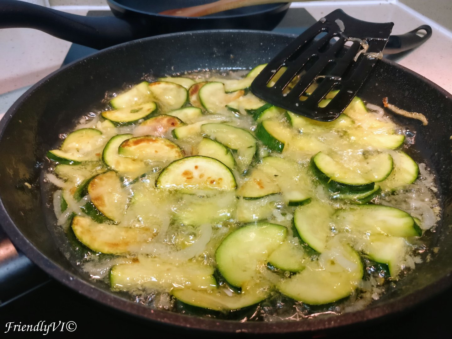 3. Start frying the vegetables on high heat for 15 min. I used the settings 6 or 7 out of 10 and the reason is that I want the zucchini to get golden fast, but not mushy.