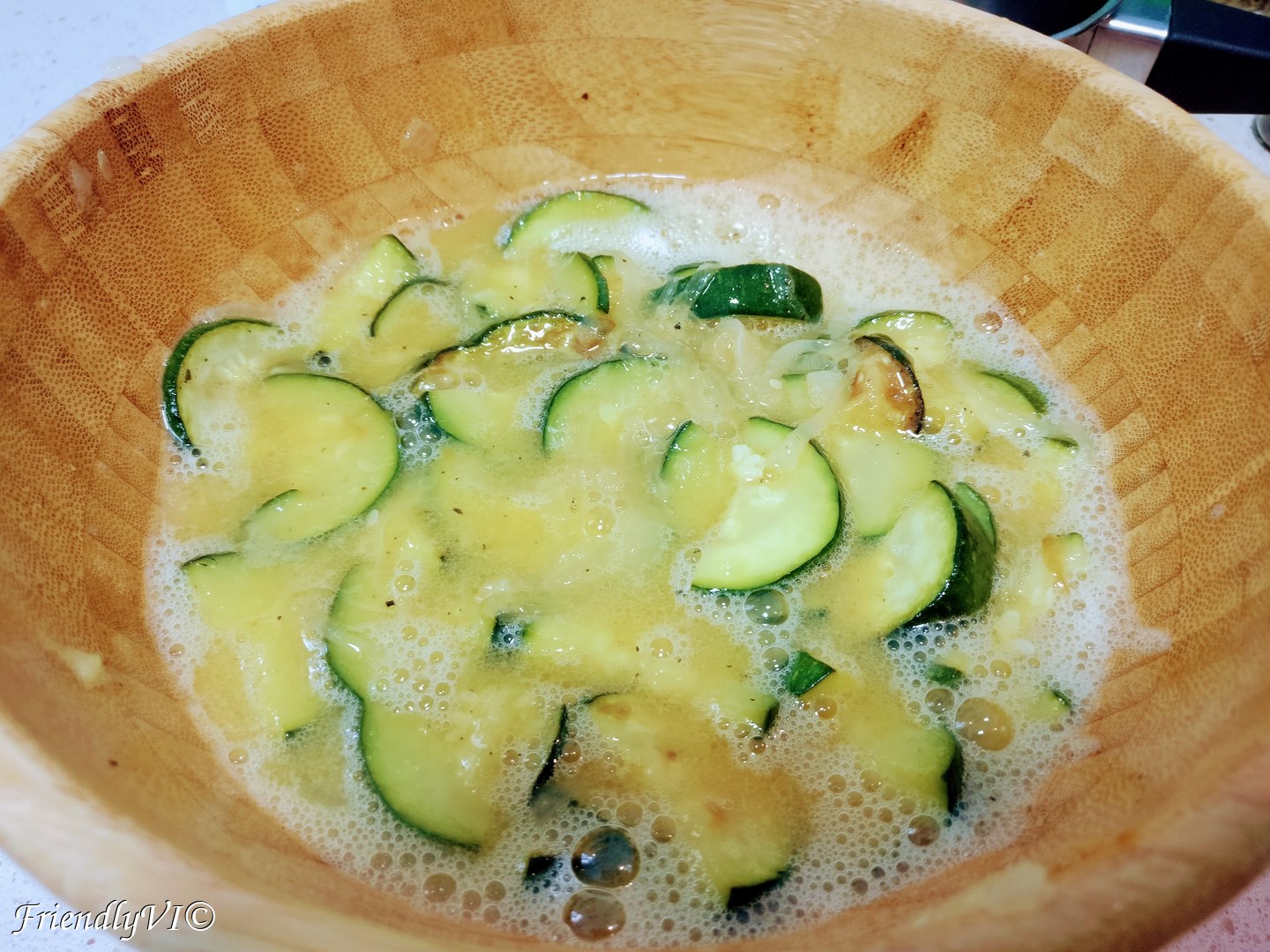 5. Beat the eggs really well. Season both the eggs and the veggies with salt and pepper and mix them together slowly.