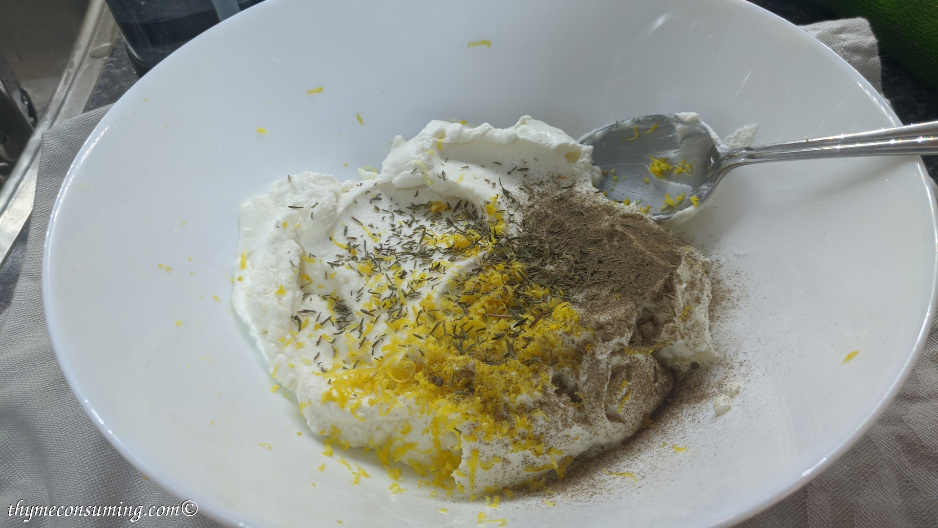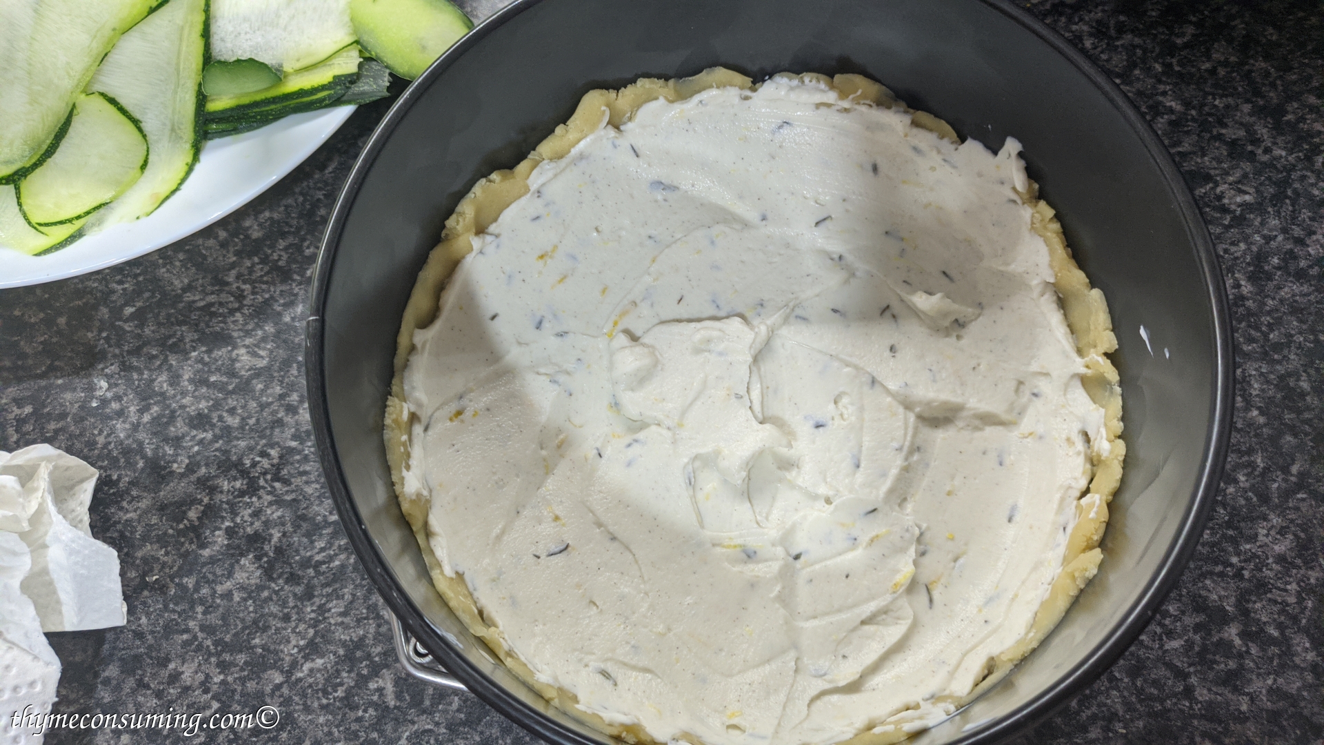 - Mix the ricotta with the lemon zest, thyme, salt and pepper and place it in the form.