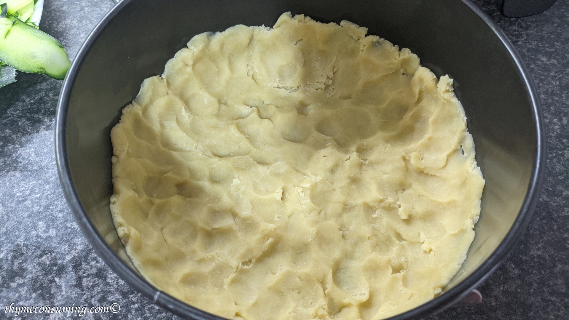 - In a buttered tray put the dough and push it around with your fist until it fully covers it (it is a bit difficult, since it’s cold and hard, but not impossible).