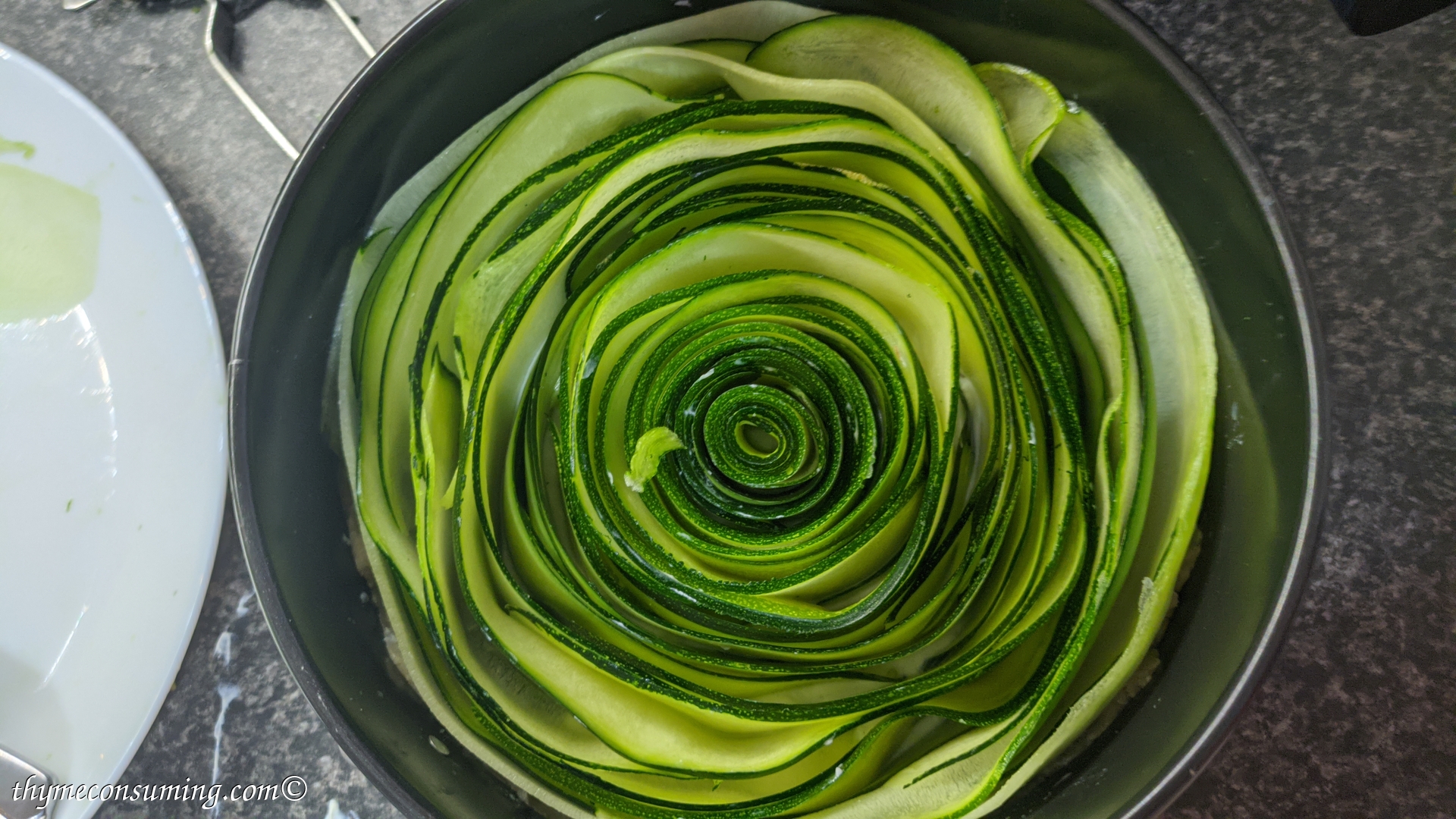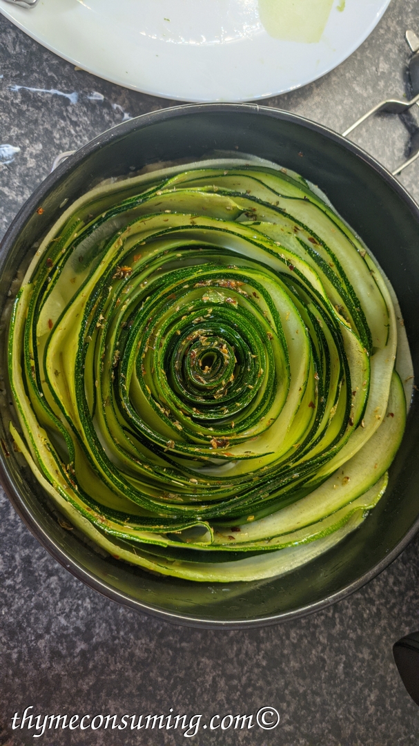 This zucchini pie charmed me by its beauty. It looks like a beautiful rose. For the taste, it tastes a lot like zucchini :D. It is not the most exquisite, but it is a good enough trade off for me with the beauty. For the crust, I used my cherry pie recipe.